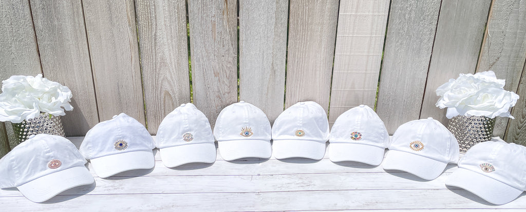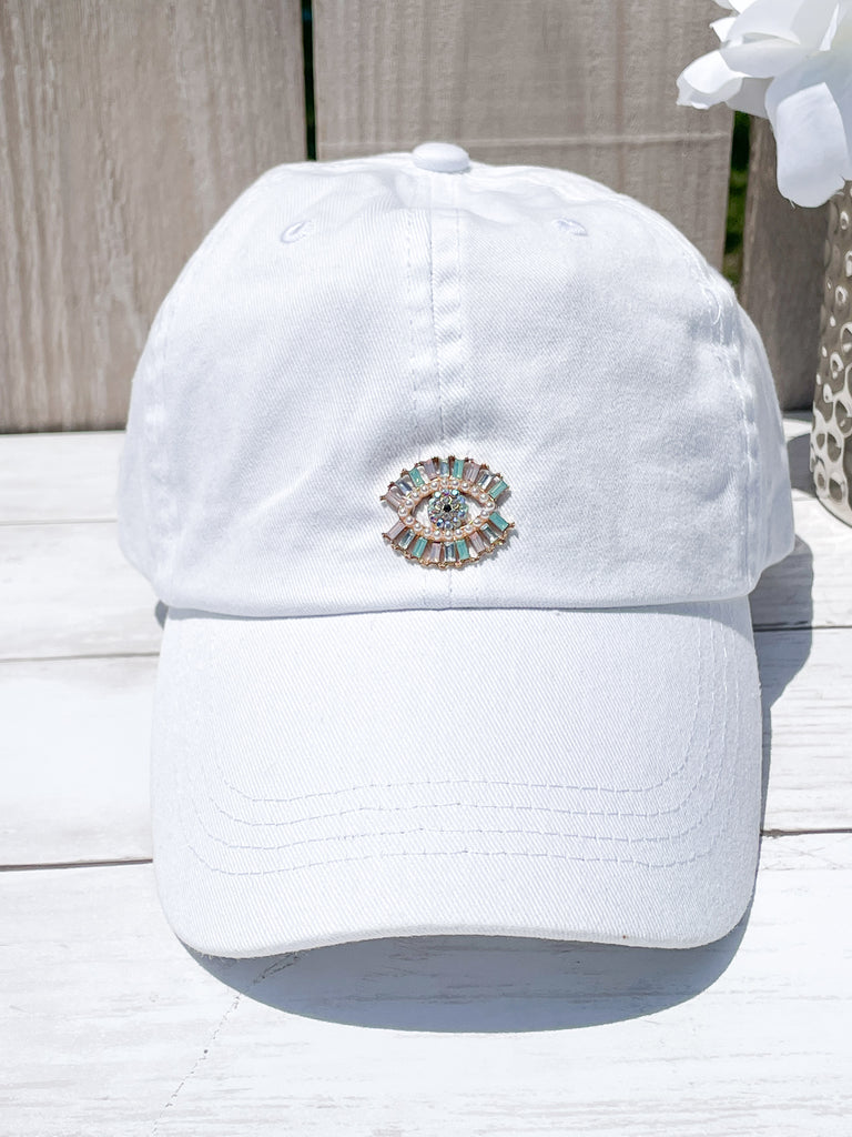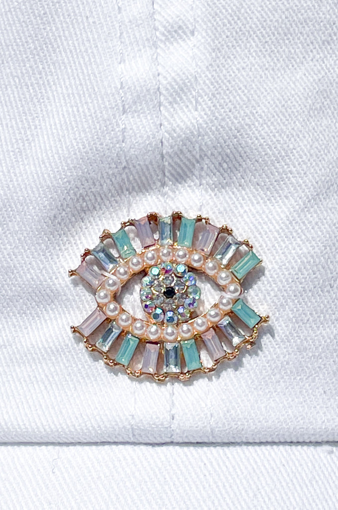 Pastel Rhinestone and Pearls Evil Eye High Ponytail Hat - White, Black or Pink Hats!