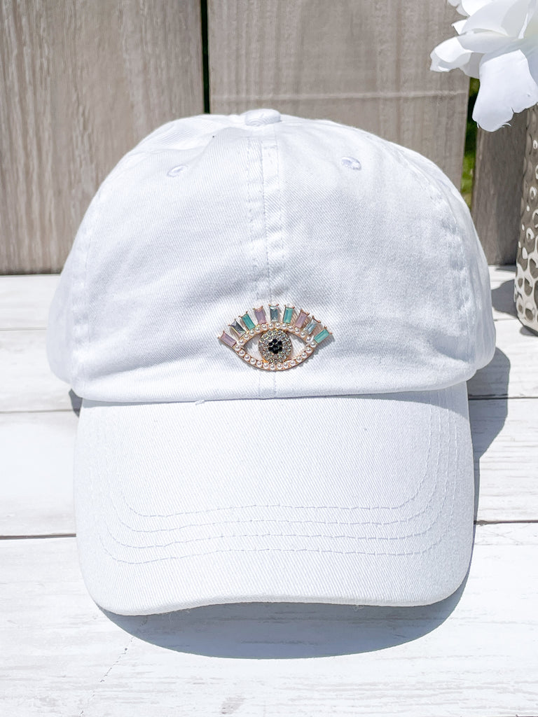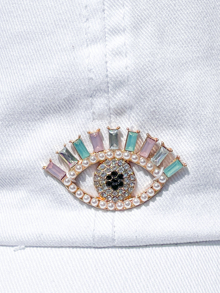 Pastel Rhinestones and Pearls Evil Eye High Ponytail Hat - White, Black or Pink Hats!