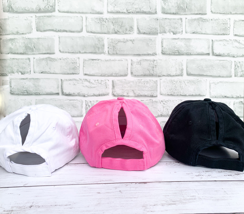 🧢This hat comes with a specially designed hole cut out towards the top of the hat in the back for your ponytail or bun!🧢