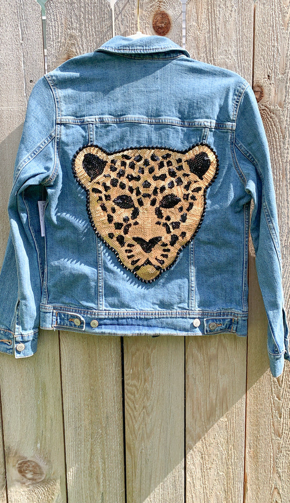 Custom Black & Gold Sequin Leopard Jean Jacket