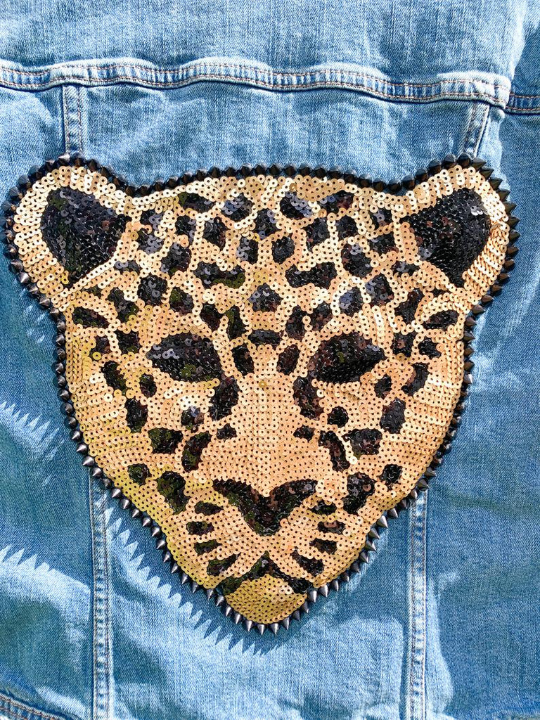 🖤 Option to add spikes or rhinestones around the sequin leopard!