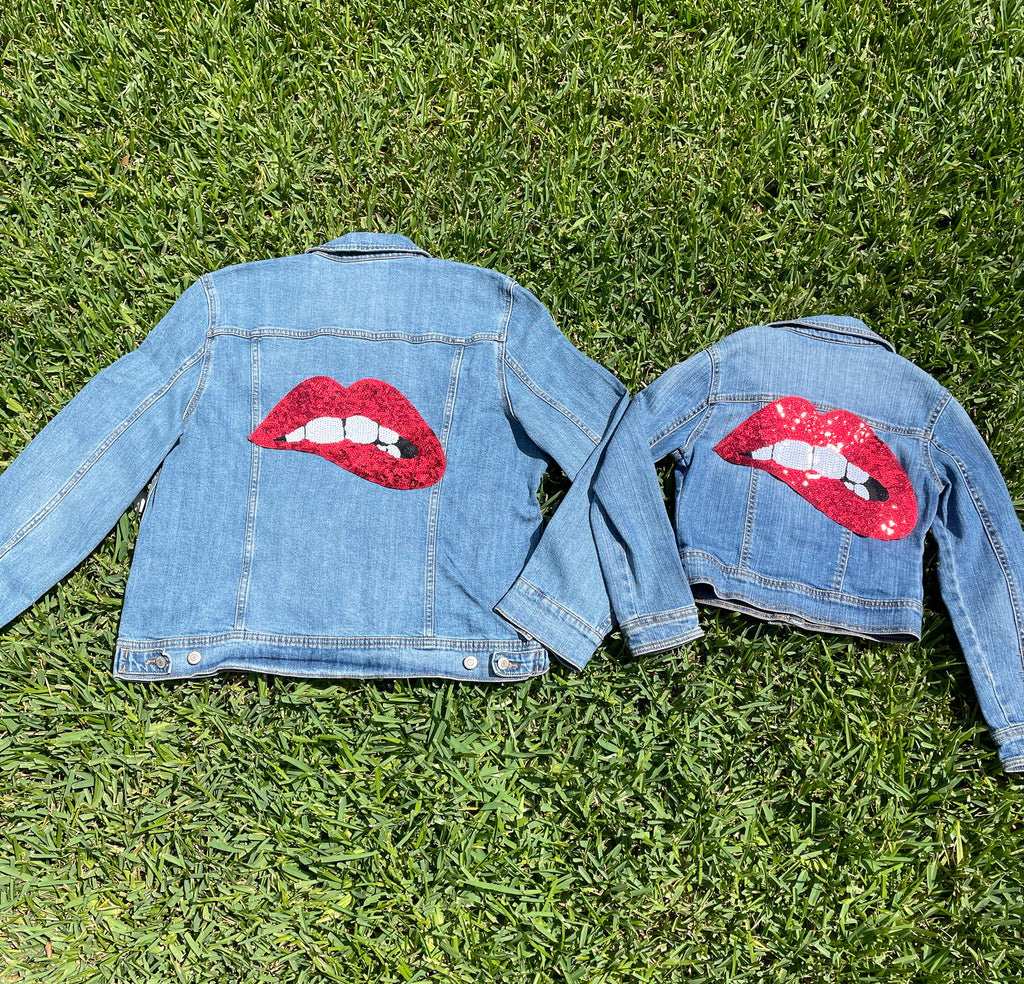 ✨ These are your perfect jackets! Unique and glamorous, make a statement with your mom and mini jean jackets and instantly add some flare to any outfit and look stylish with your mini! ✨