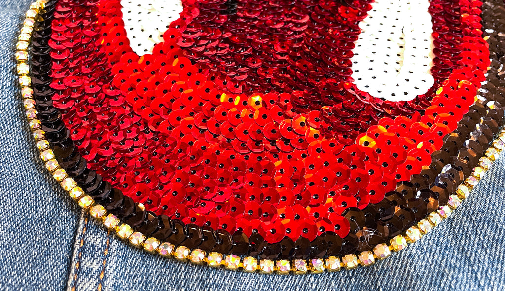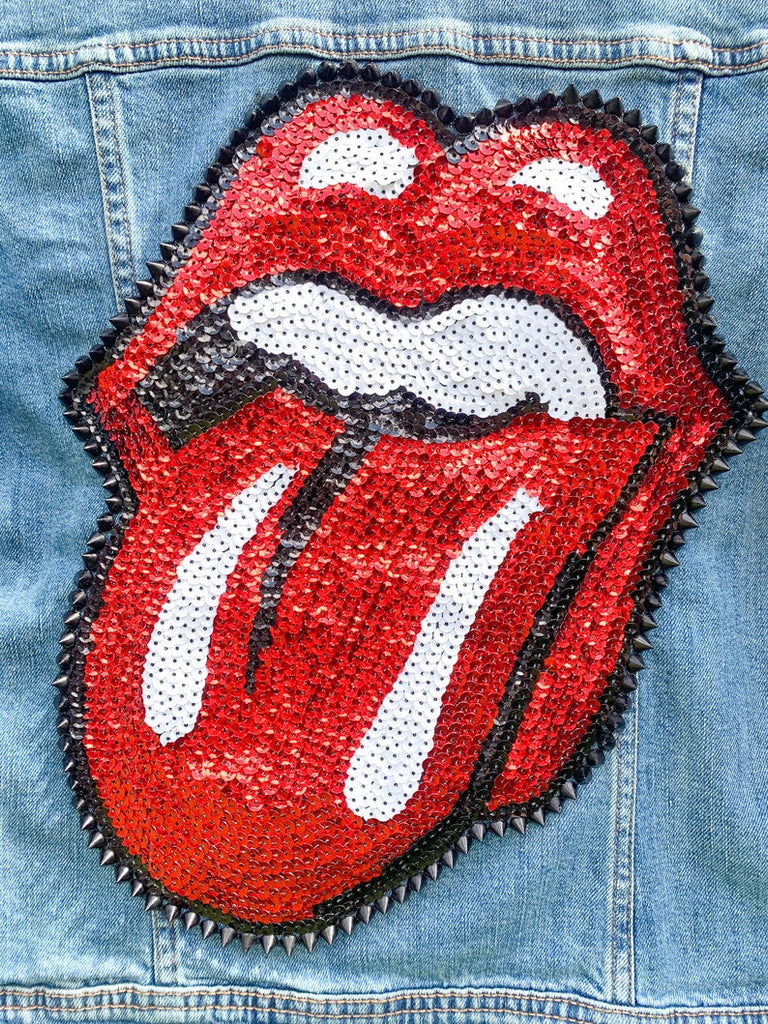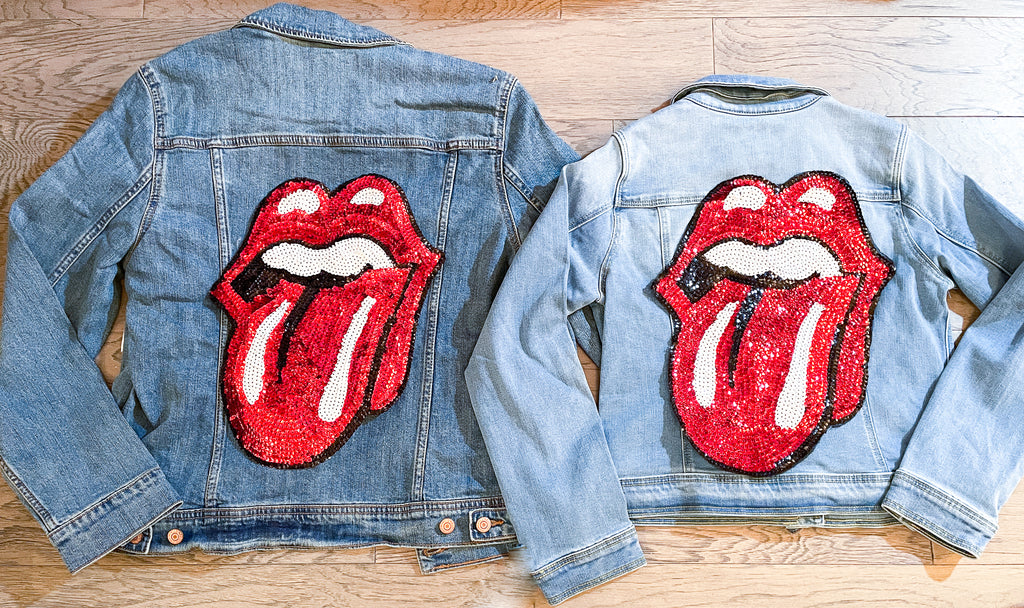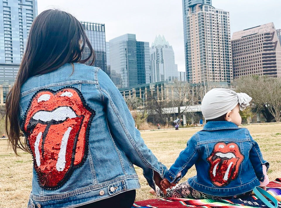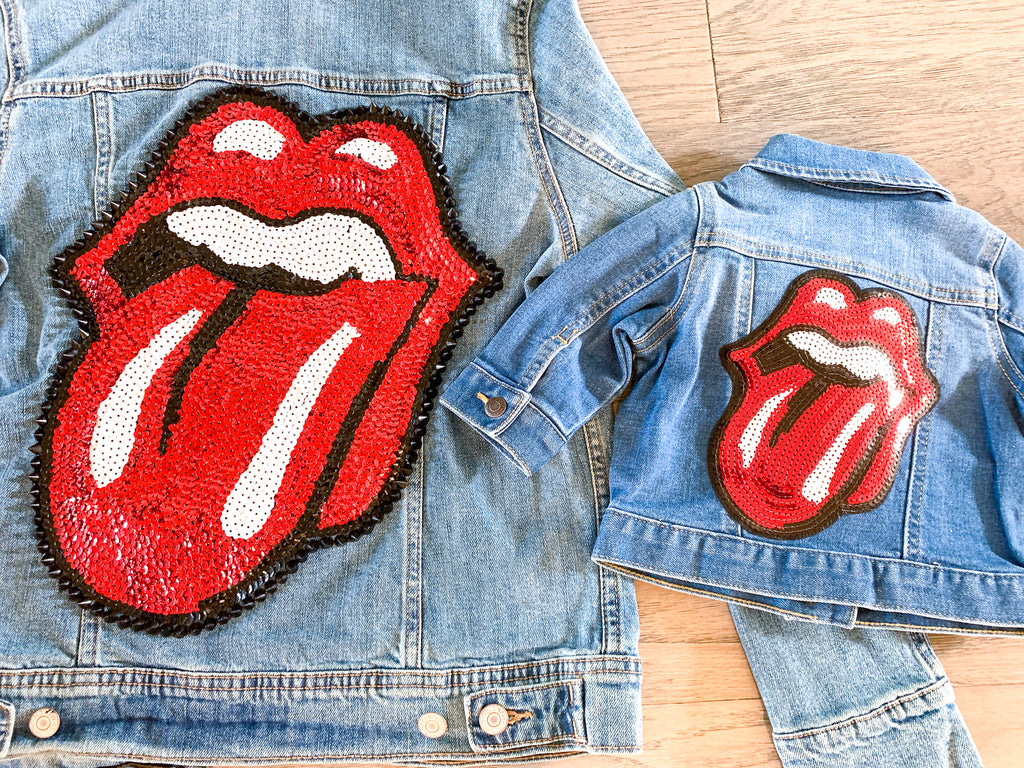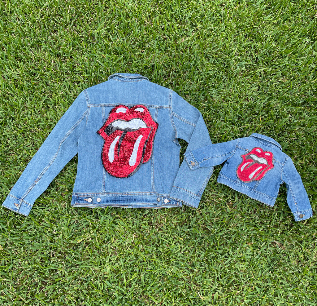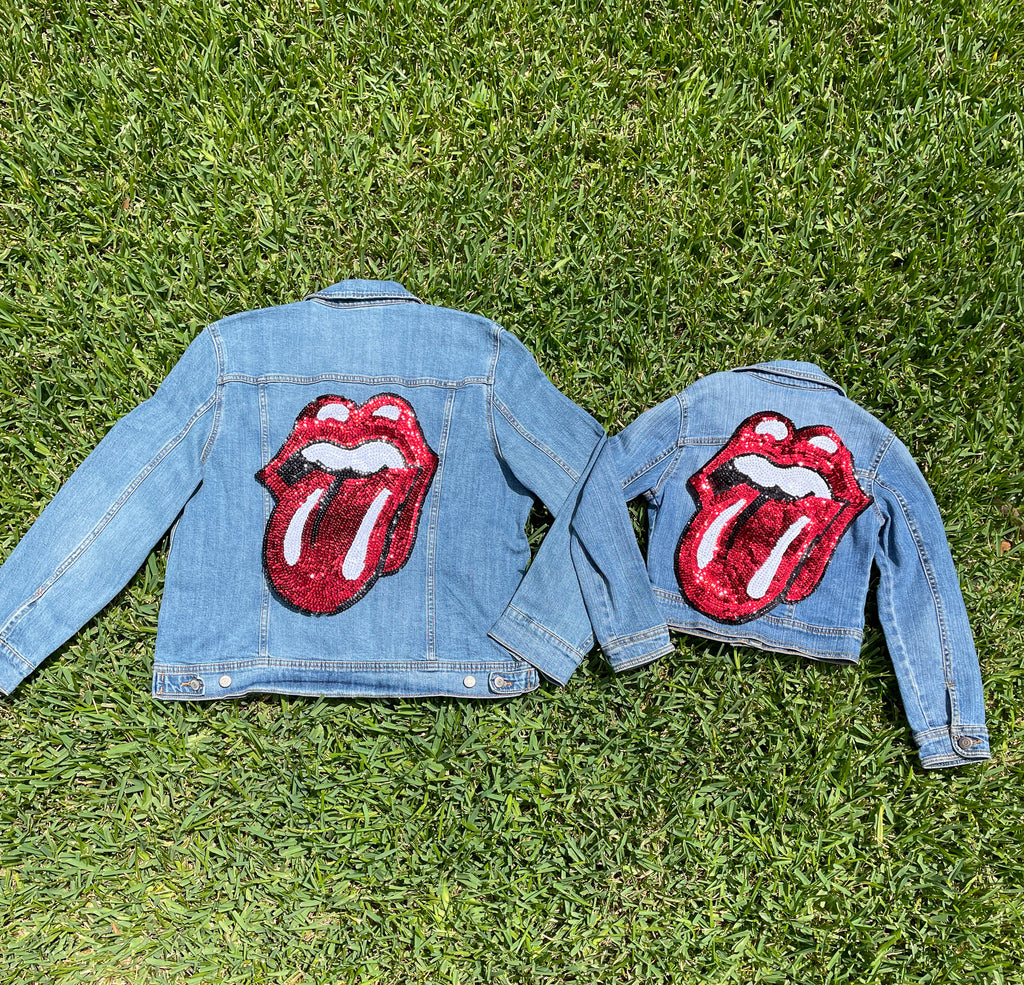 Mom and Mini Red Sequin Rock & Roll Stones Tongue Jean Jacket