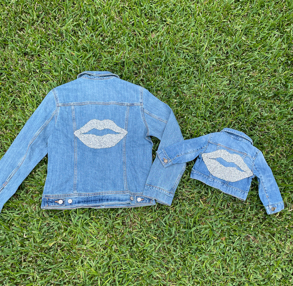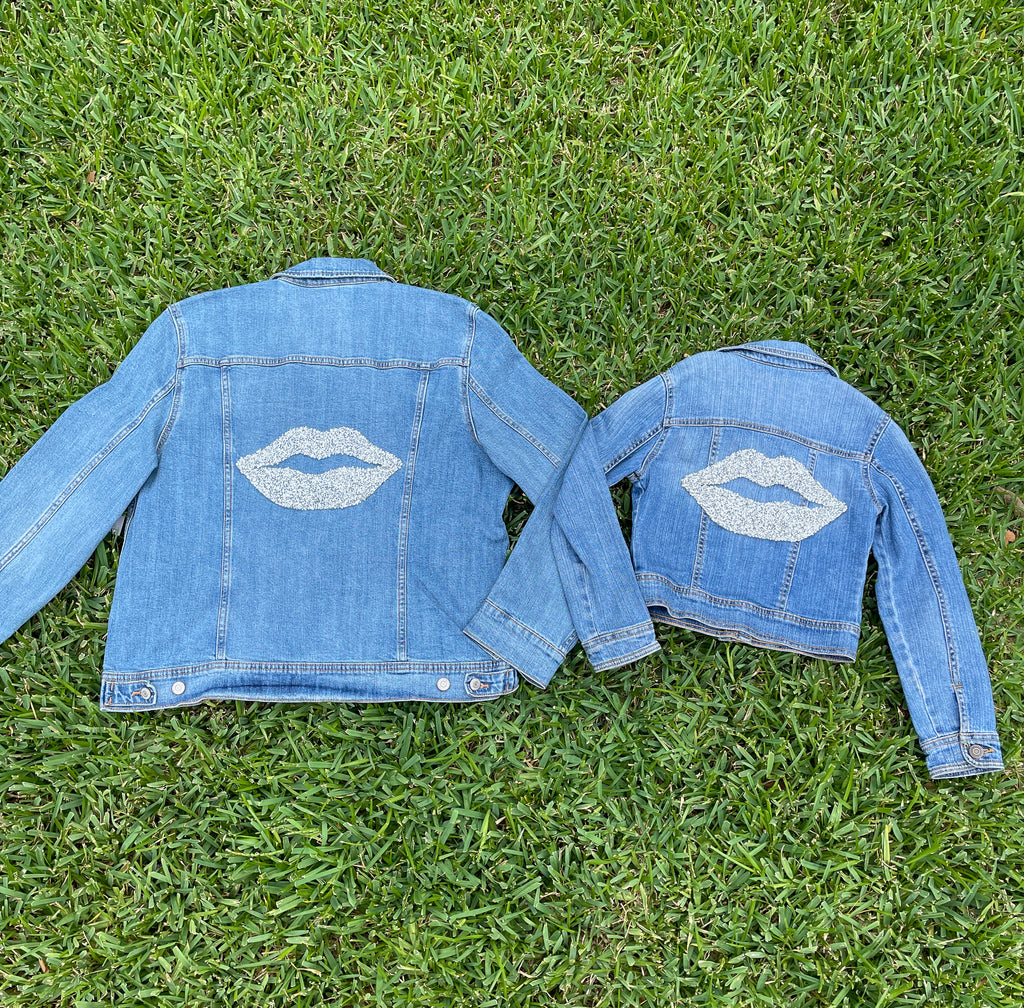 Mom and Mini Silver Rhinestone Lips Jean Jacket