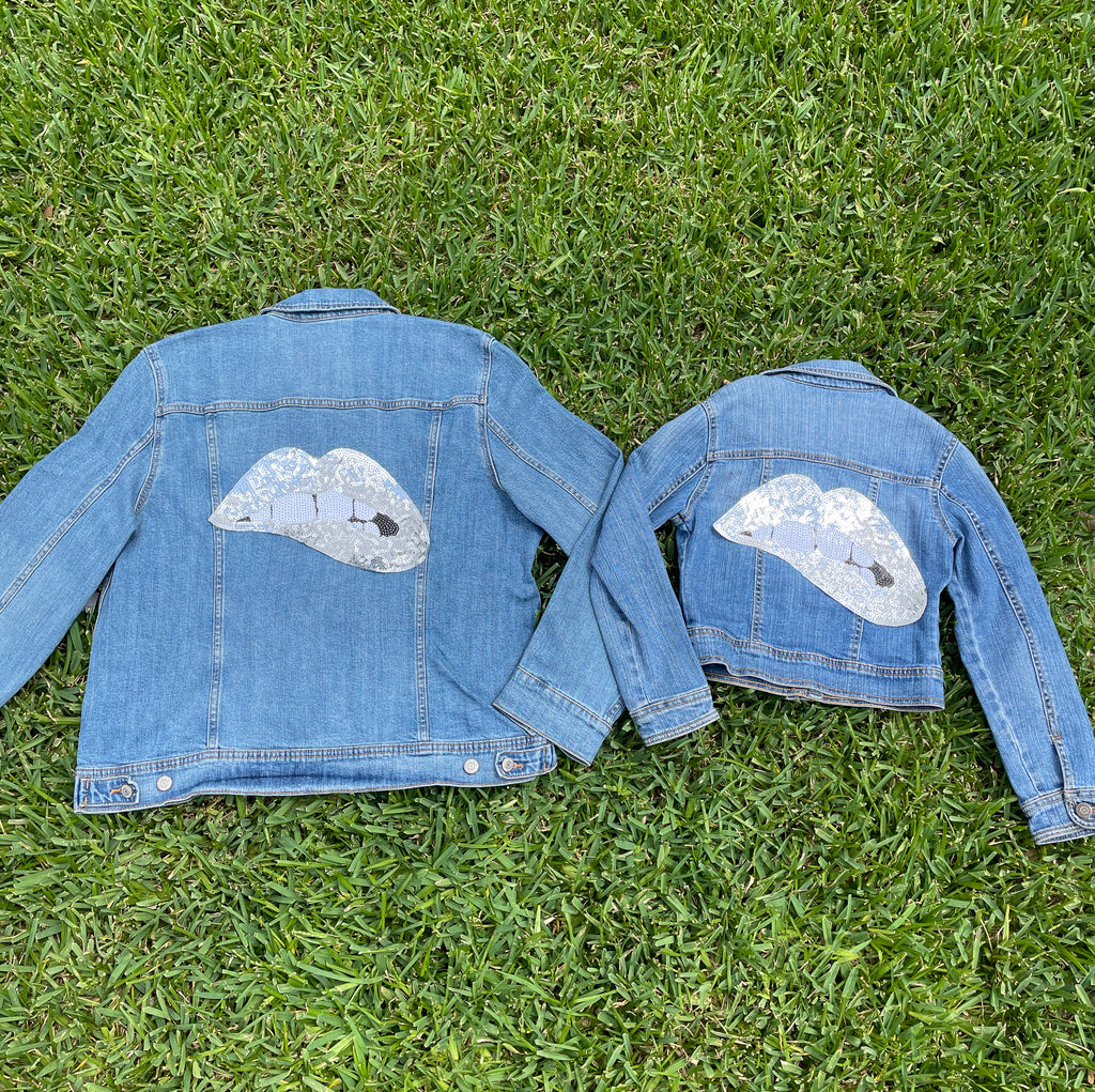 Mom and Mini Silver Sequin Lips Jean Jacket