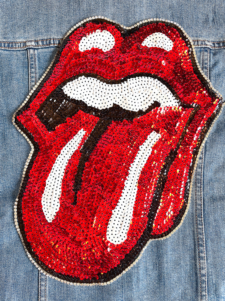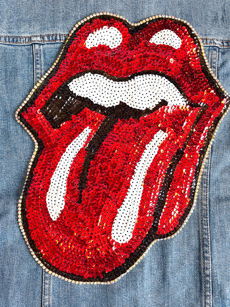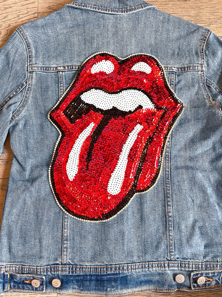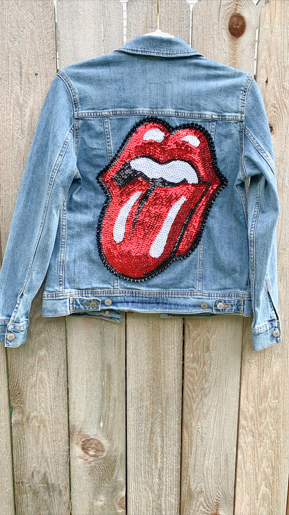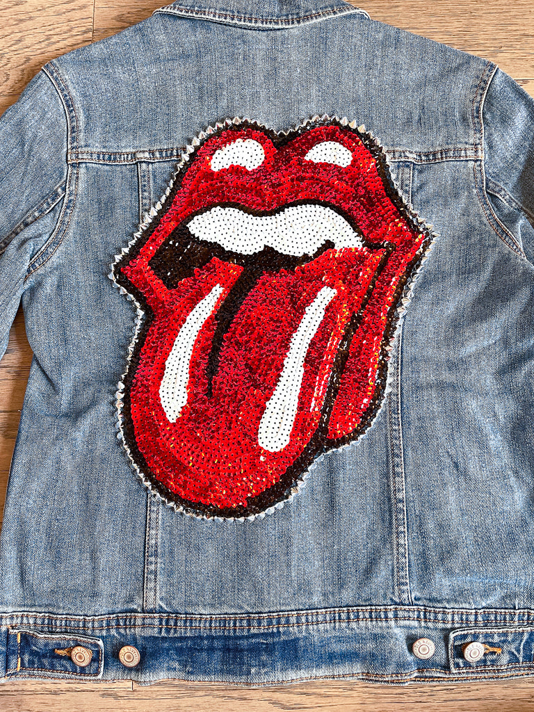 ✨💋 This is your perfect jacket! Unique and glamorous, make a statement with your sequin Rolling Stones jean jacket and instantly add some flare to any outfit 💋✨