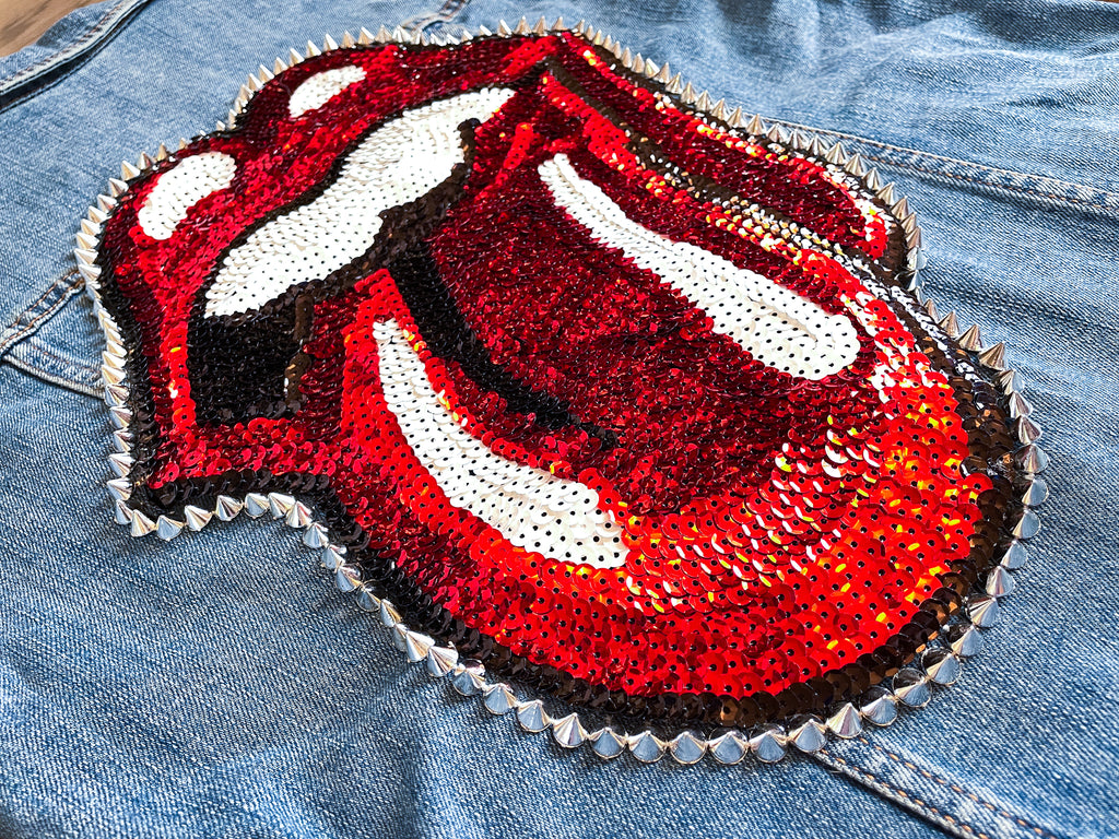 Custom Red Sequin Rock & Roll Stones Tongue Jean Jacket