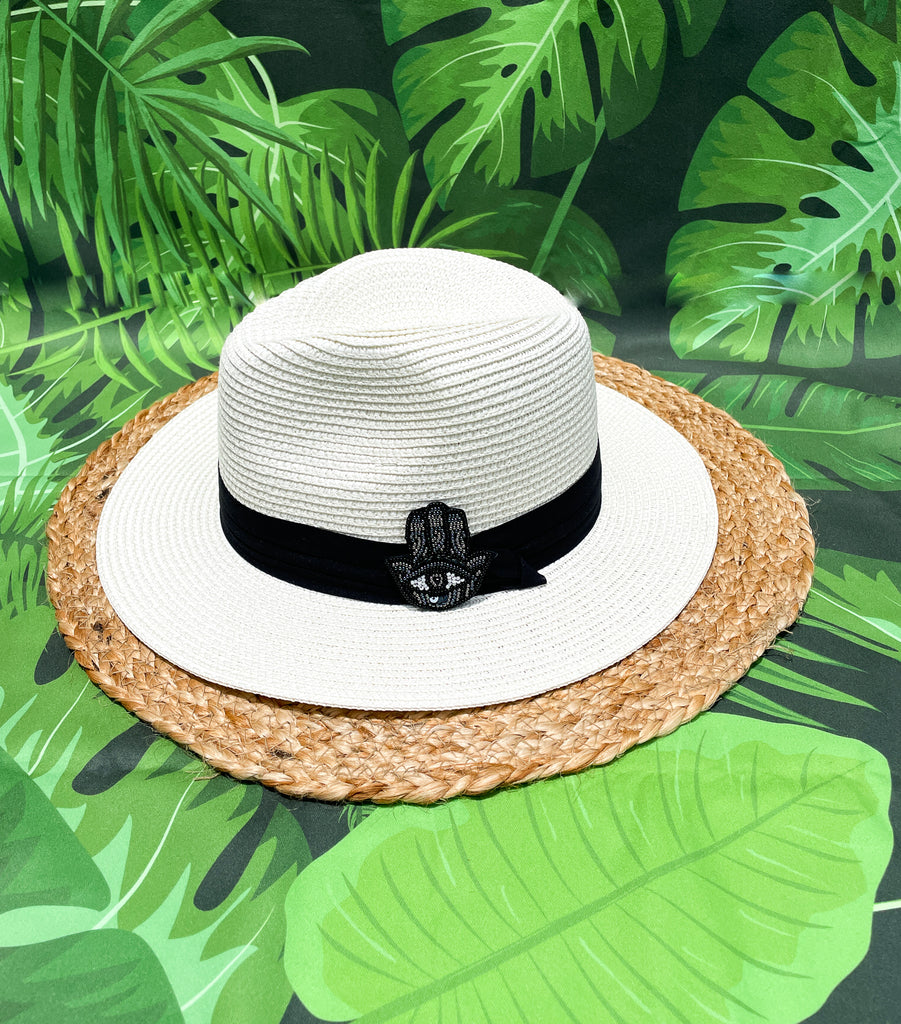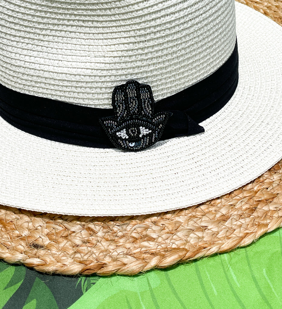 Black and Gunmetal Grey Hamsa Hand Panama Hat
