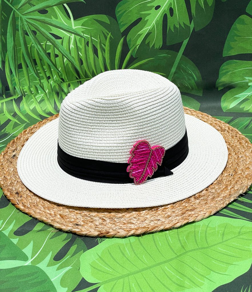 Pink Beaded & Rhinestone Palm Panama Hat
