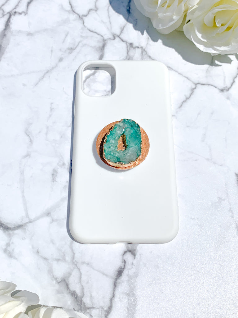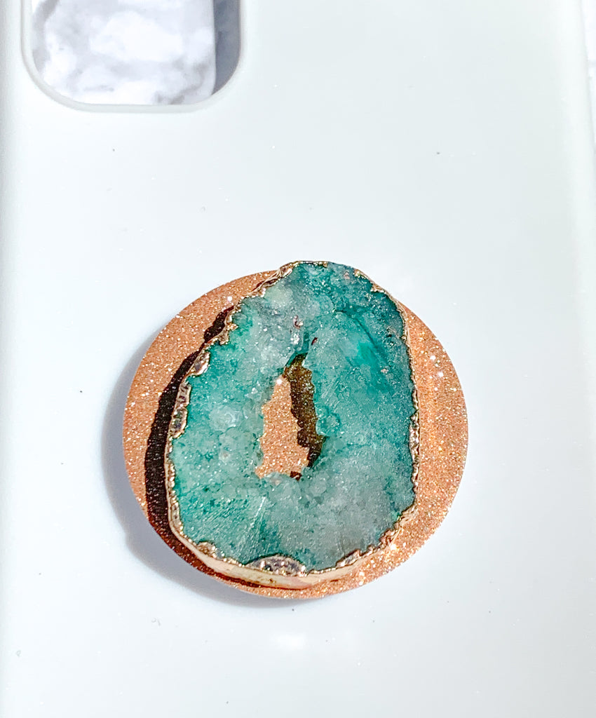Jade / Emerald Green Druzy Geode Crystal Gold Edged Phone Popsocket
