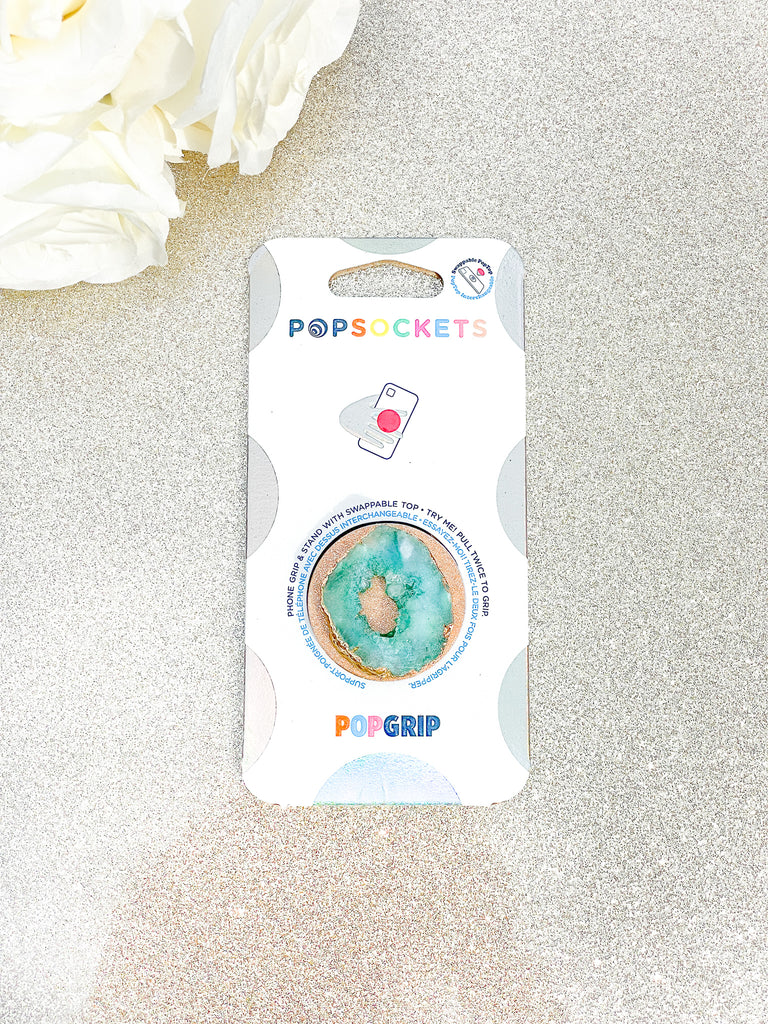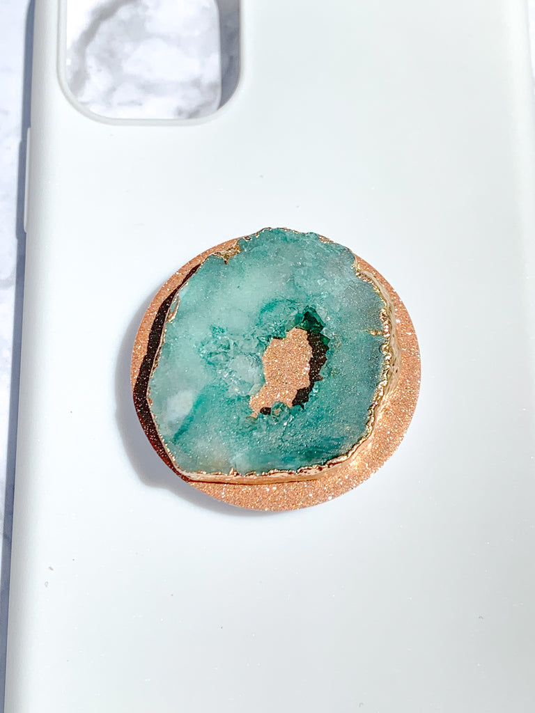 Jade / Emerald Green Druzy Geode Crystal Gold Edged Phone Popsocket