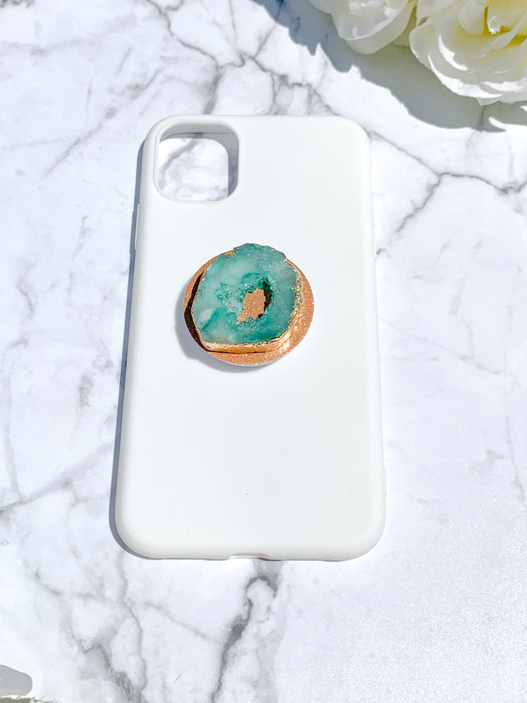 Jade / Emerald Green Druzy Geode Crystal Gold Edged Phone Popsocket 5