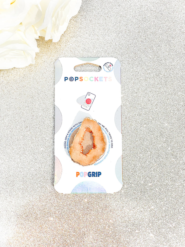 Peach / Pink Druzy Geode Crystal Gold Edged with Rainbow AB Shine Phone Popsocket 8