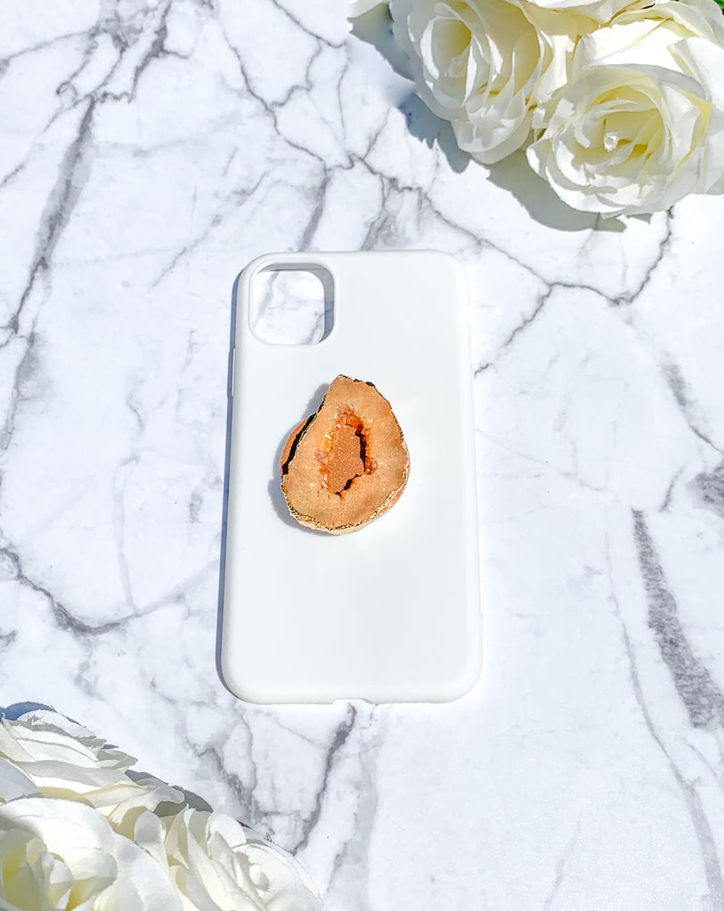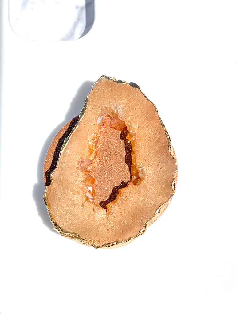 Peach / Pink Druzy Geode Crystal Gold Edged with Rainbow AB Shine Phone Popsocket