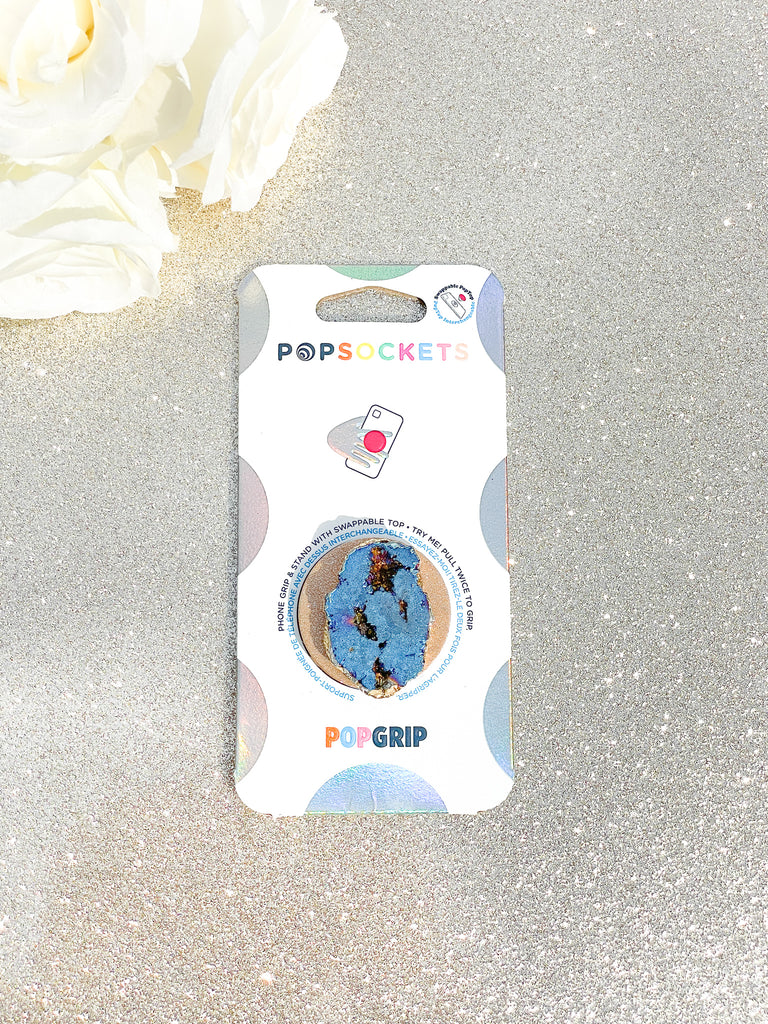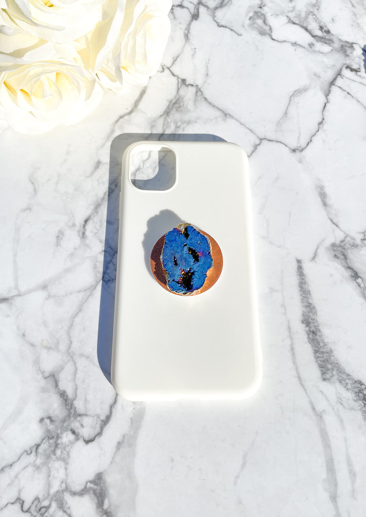 Sapphire Blue Iridescent Druzy Geode Crystal Gold Edged Phone Popsocket 4