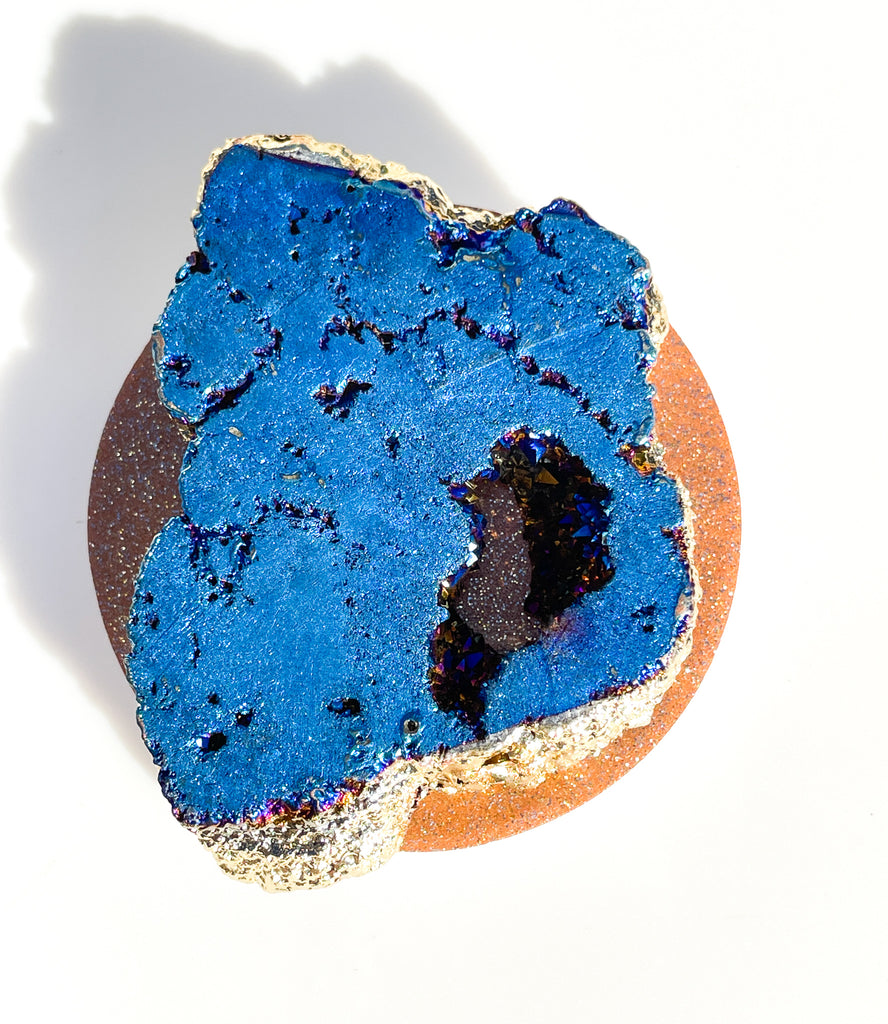 Sapphire Blue Iridescent Druzy Geode Crystal Gold Edged with Rainbow AB Shine Phone Popsocket