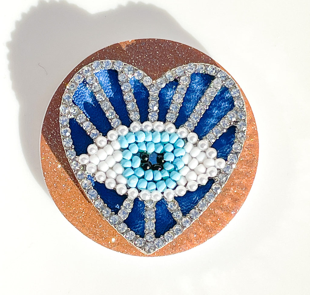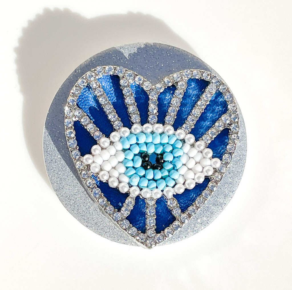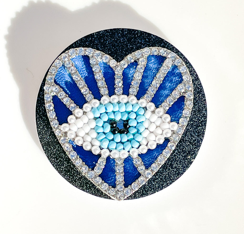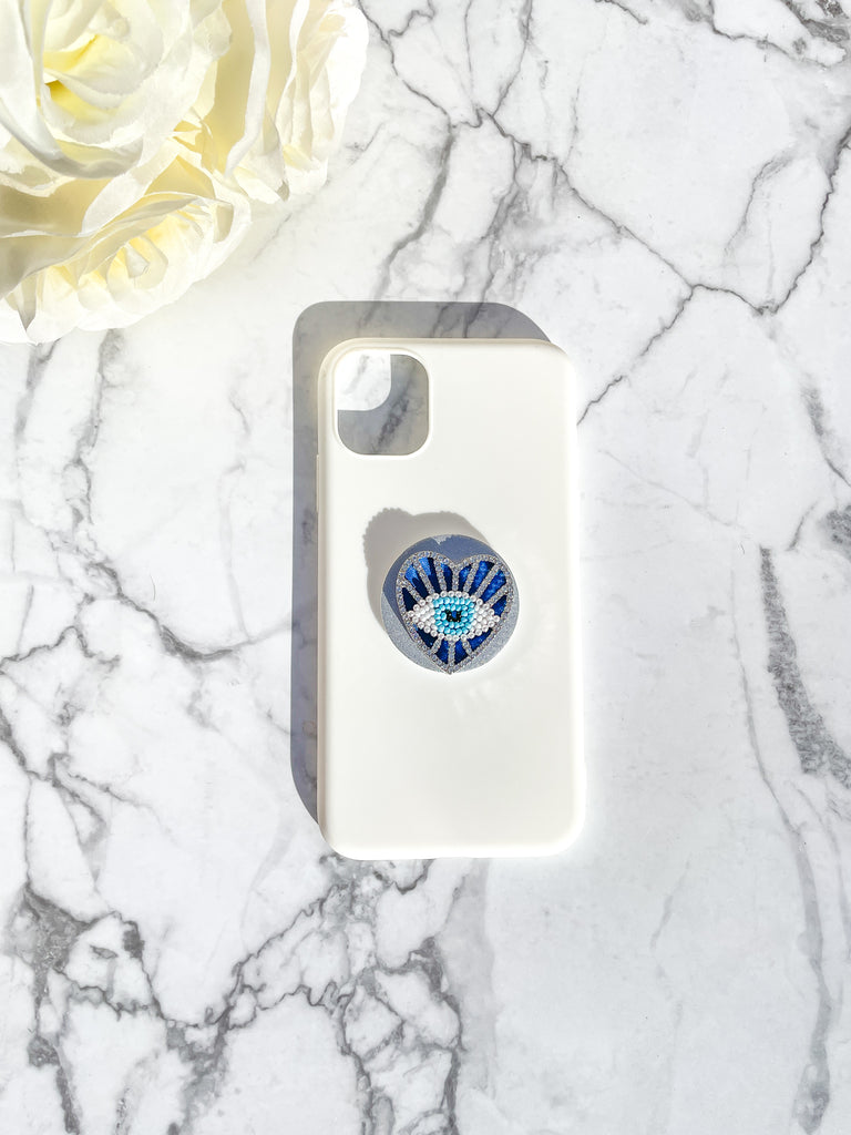 Beaded & Rhinestone Blue Heart Evil Eye Phone Popsocket - Choose Your Background Color!