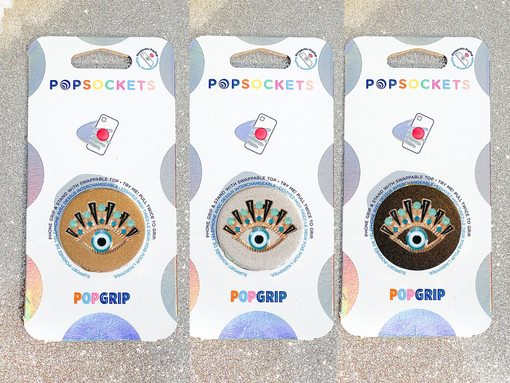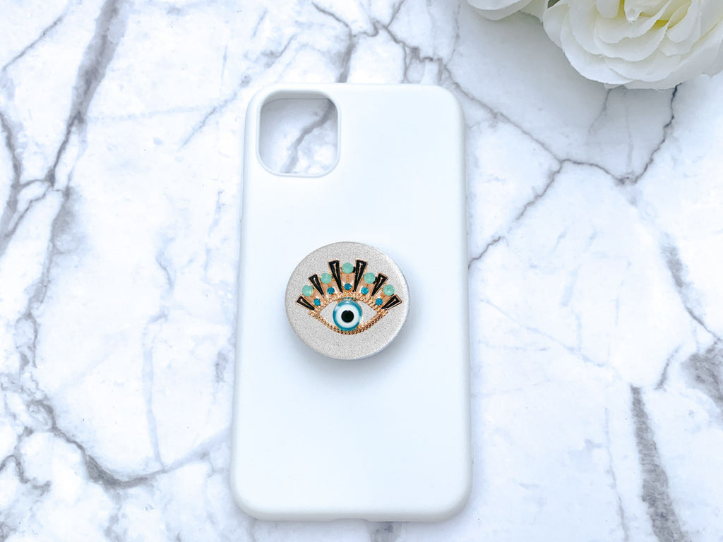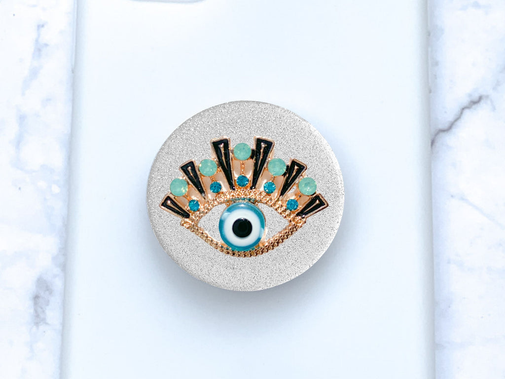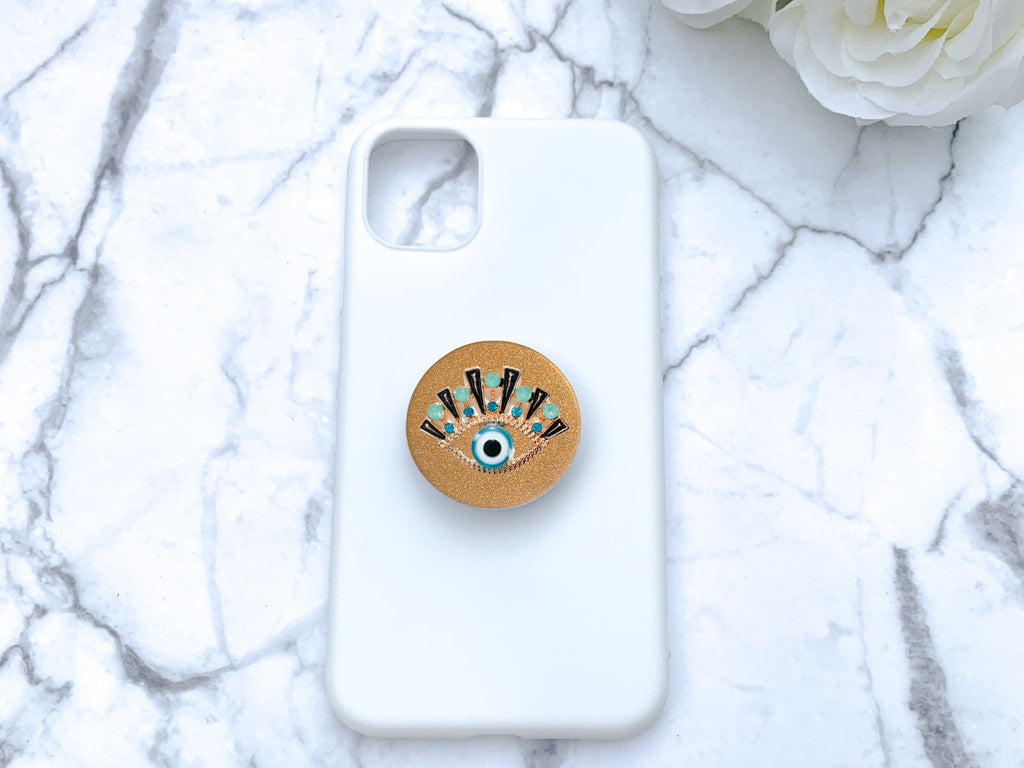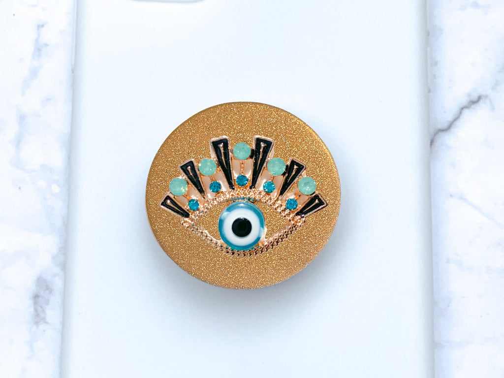 Gold and Turquoise Rhinestones Evil Eye Phone Popsocket - Choose Your Background Color!
