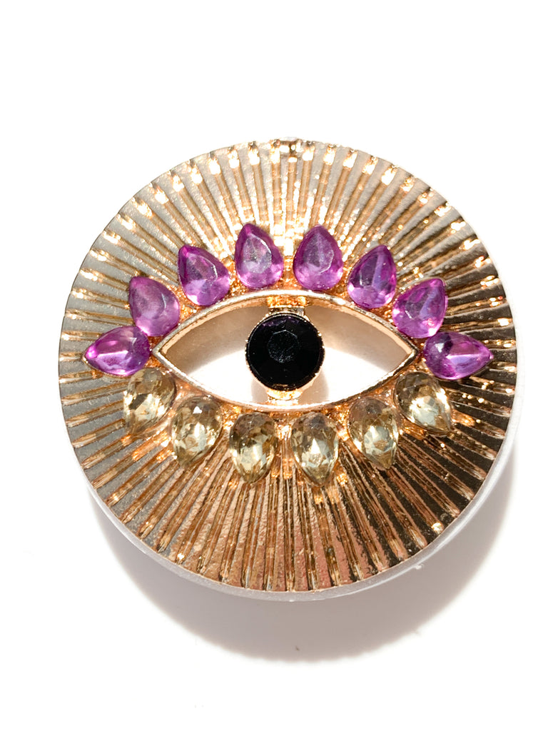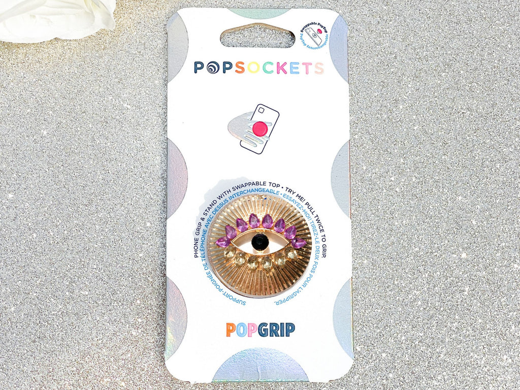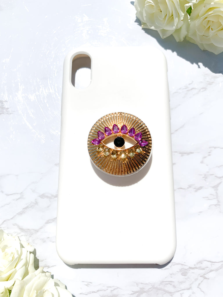 Gold Evil Eye with Purple & Champagne Rhinestones Phone Popsocket