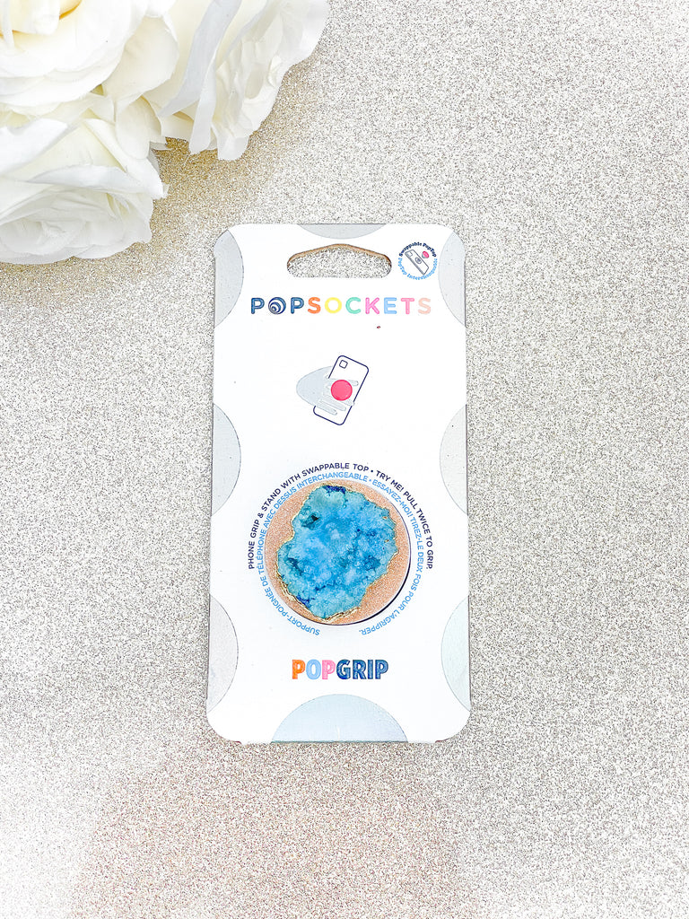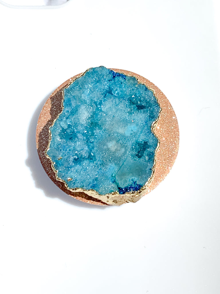 Aquamarine / Topaz Blue Druzy Geode Crystal Gold Edged Phone Popsocket
