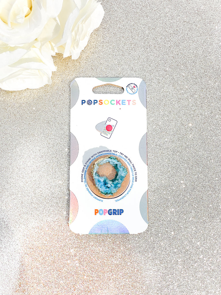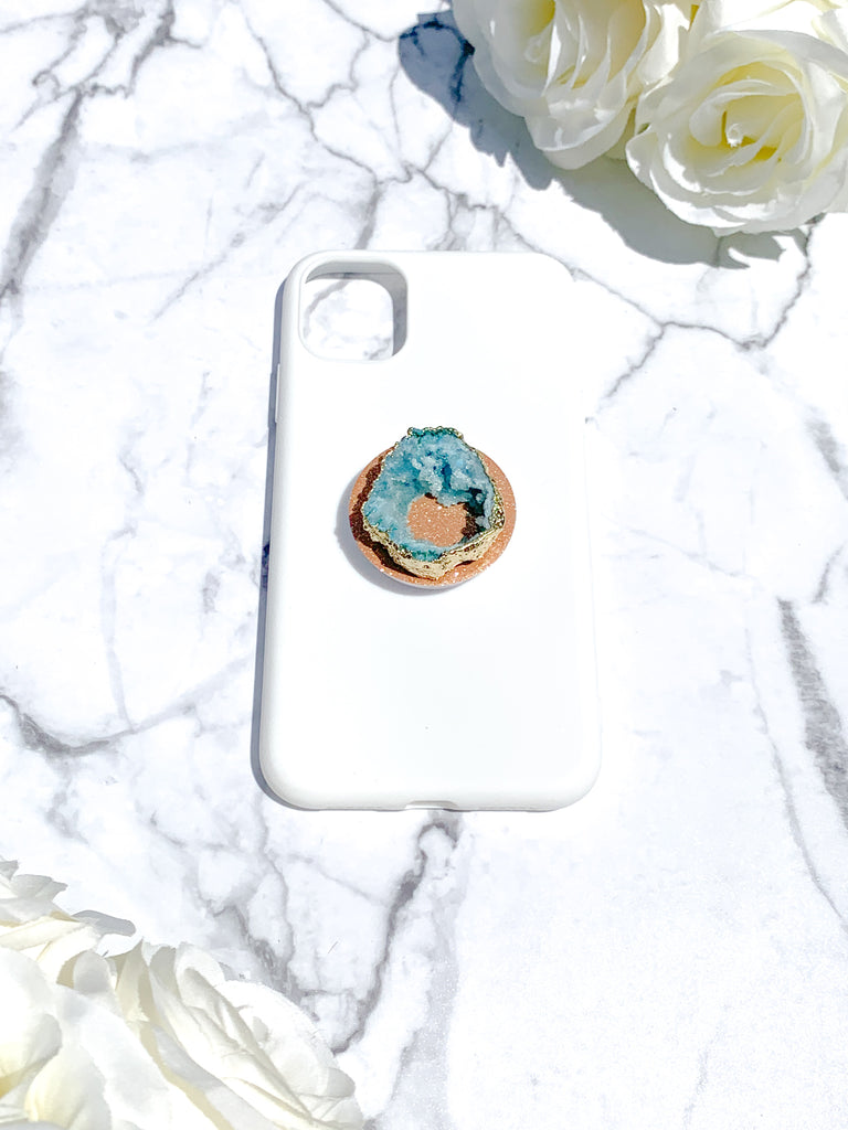 Aquamarine / Topaz Blue Druzy Geode Crystal Gold Edged Phone Popsocket
