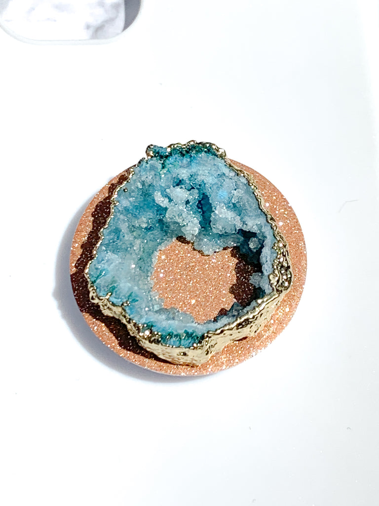 Aquamarine / Topaz Blue Druzy Geode Crystal Gold Edged Phone Popsocket 5
