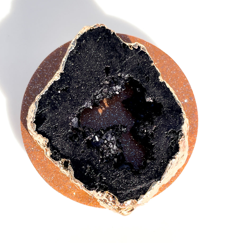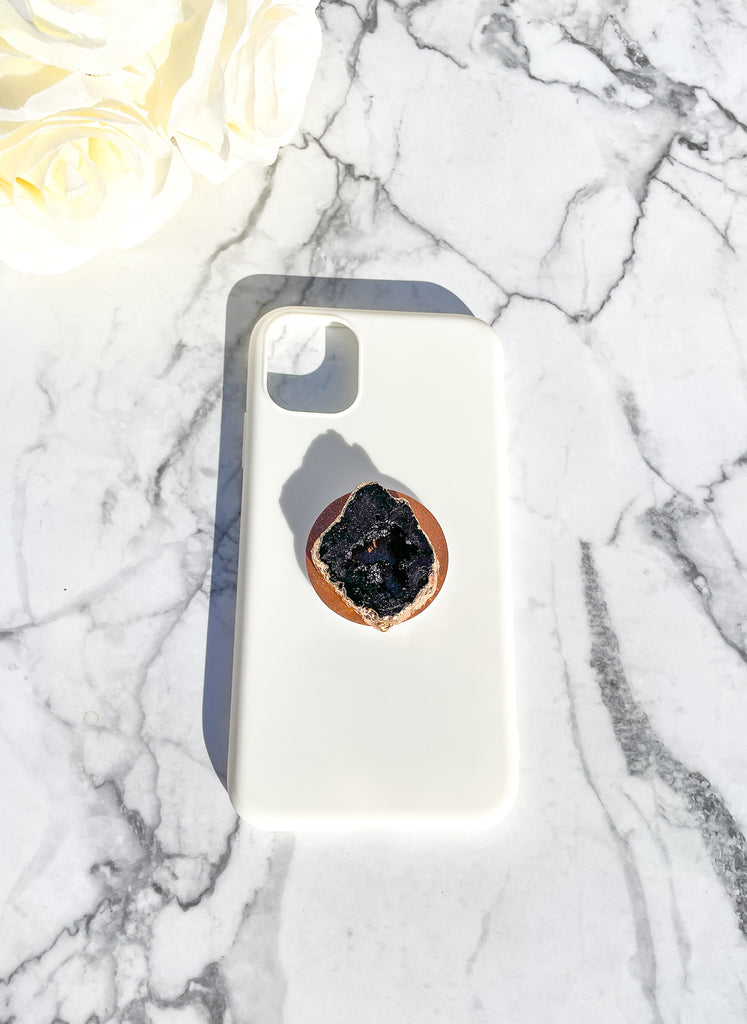Onyx Black Druzy Geode Crystal Gold Edged Phone Popsocket