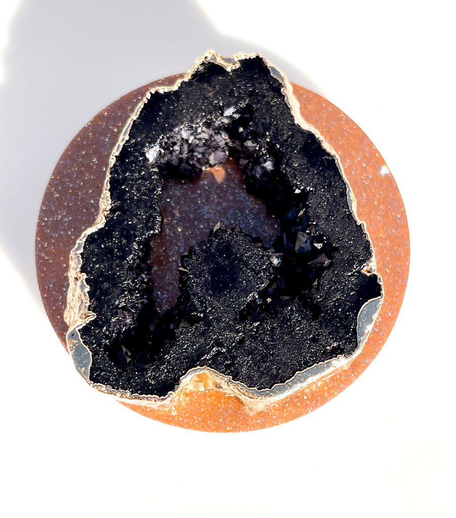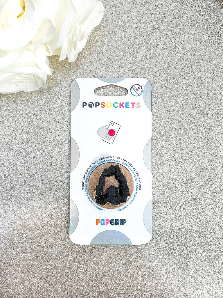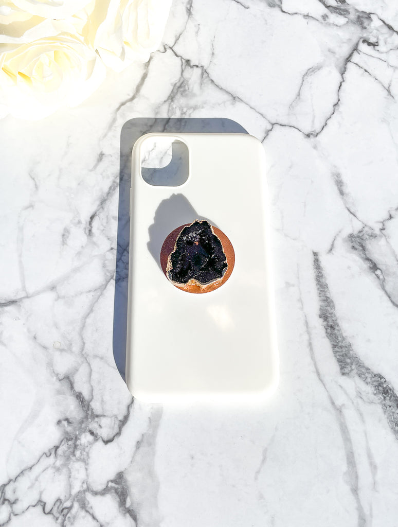 Onyx Black Druzy Geode Crystal Gold Edged Phone Popsocket