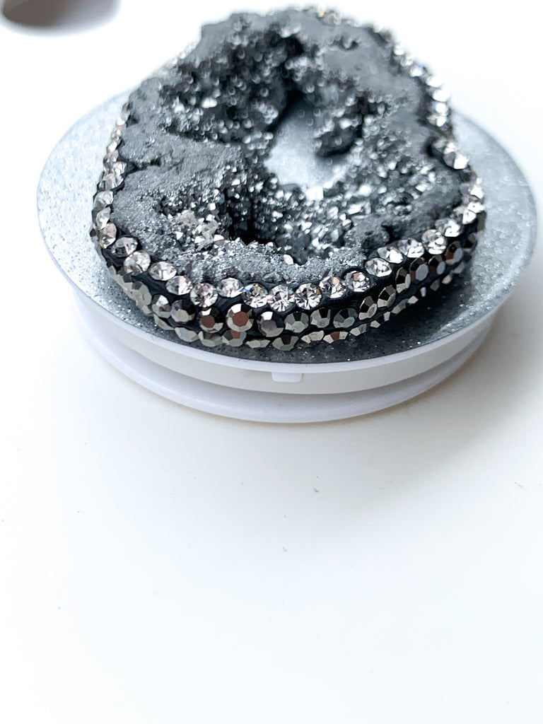 Pyrite Silver Druzy Geode Crystal Rhinestone Edged Phone Popsocket 2