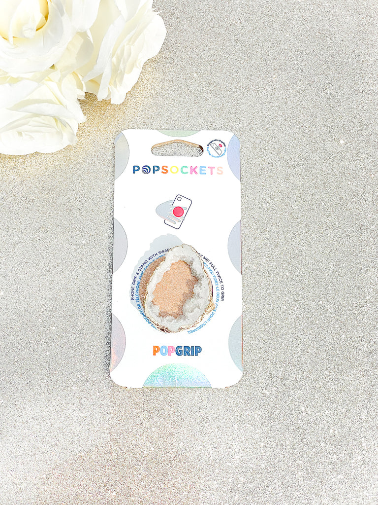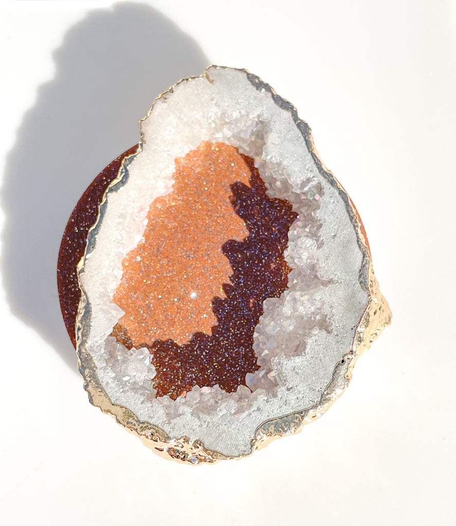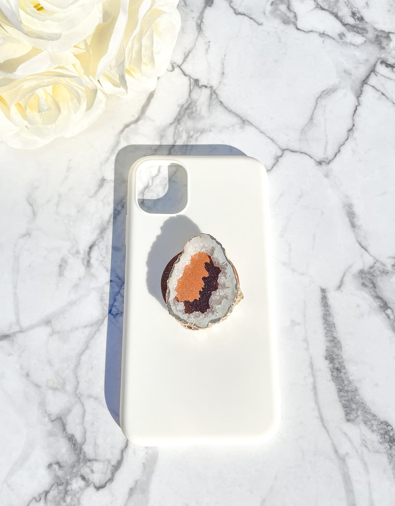 White Iridescent Druzy Geode Crystal Gold Edged Phone Popsocket 10