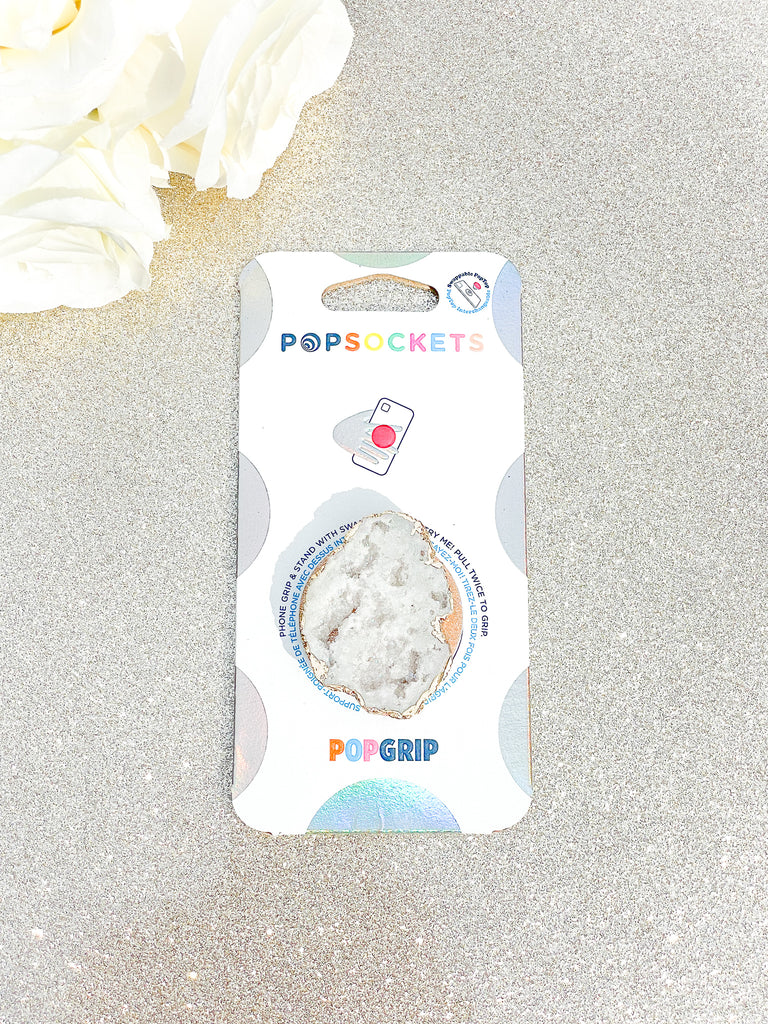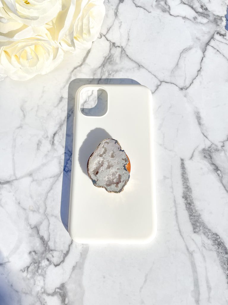 White Iridescent Druzy Geode Crystal Gold Edged Phone Popsocket 4