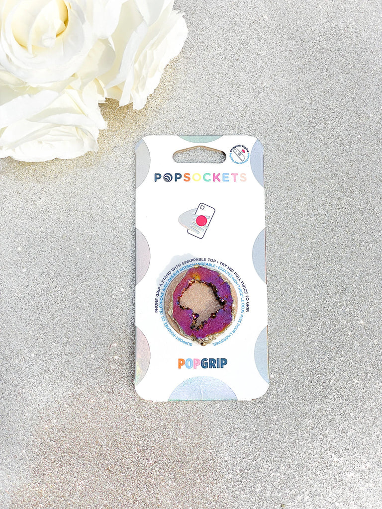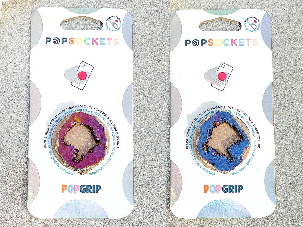 Mermaid Purple or Sapphire Blue Iridescent Druzy Geode Crystal Gold Edged Phone Popsocket 2