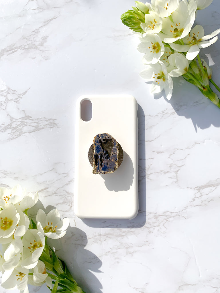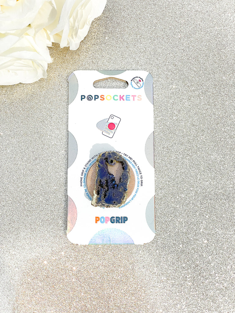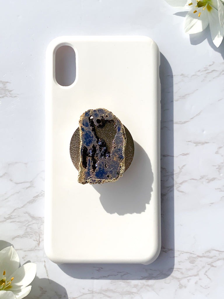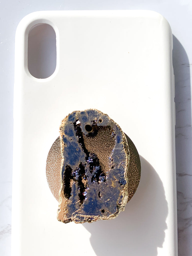 Navy and Gold Druzy Geode Crystal Gold Edged Phone Popsocket