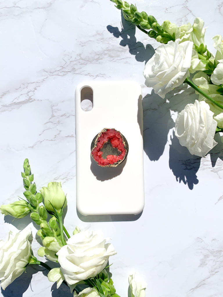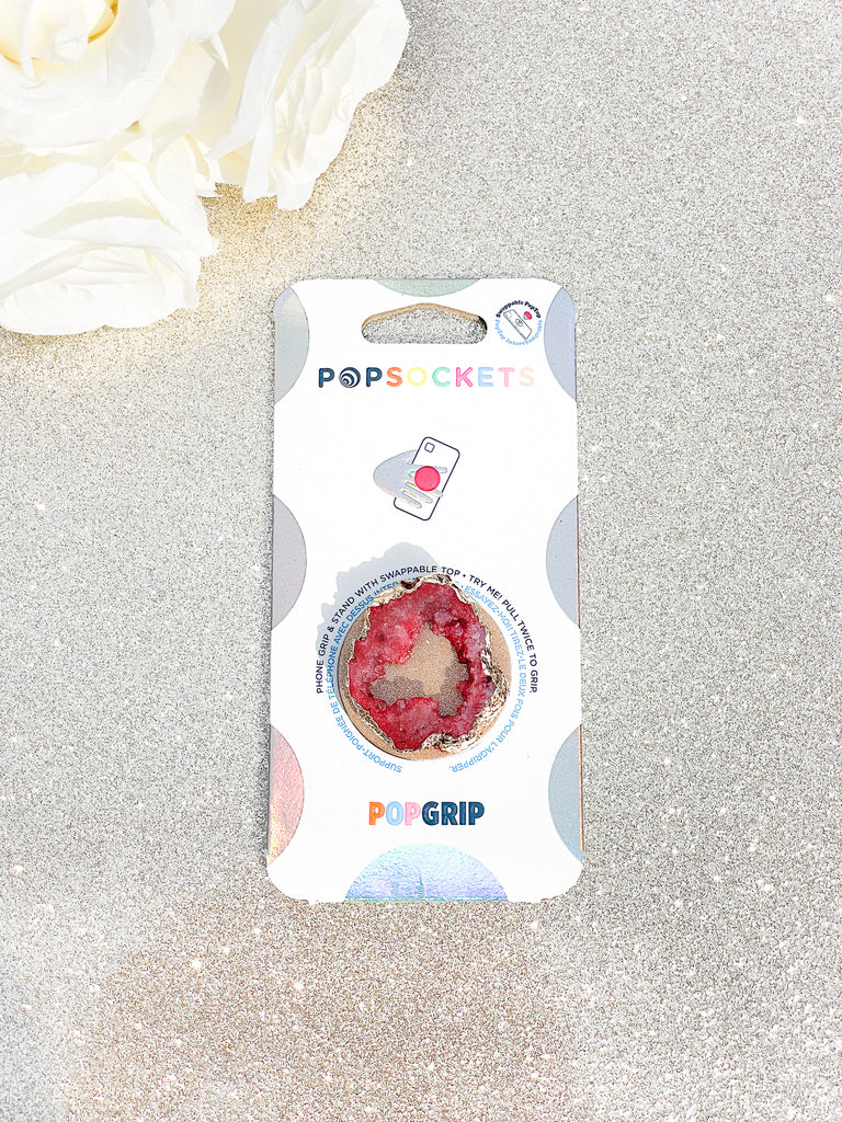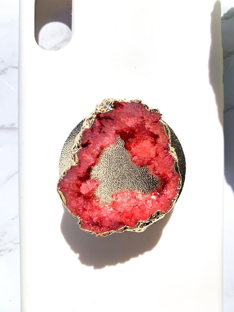 Ruby Red / Pink Druzy Geode Crystal Gold Edged Phone Popsocket