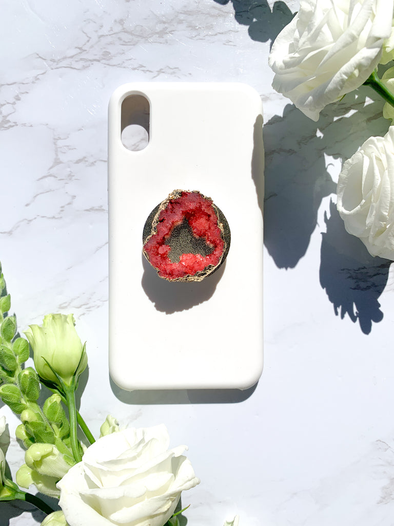 Ruby Red / Pink Druzy Geode Crystal Gold Edged Phone Popsocket 4