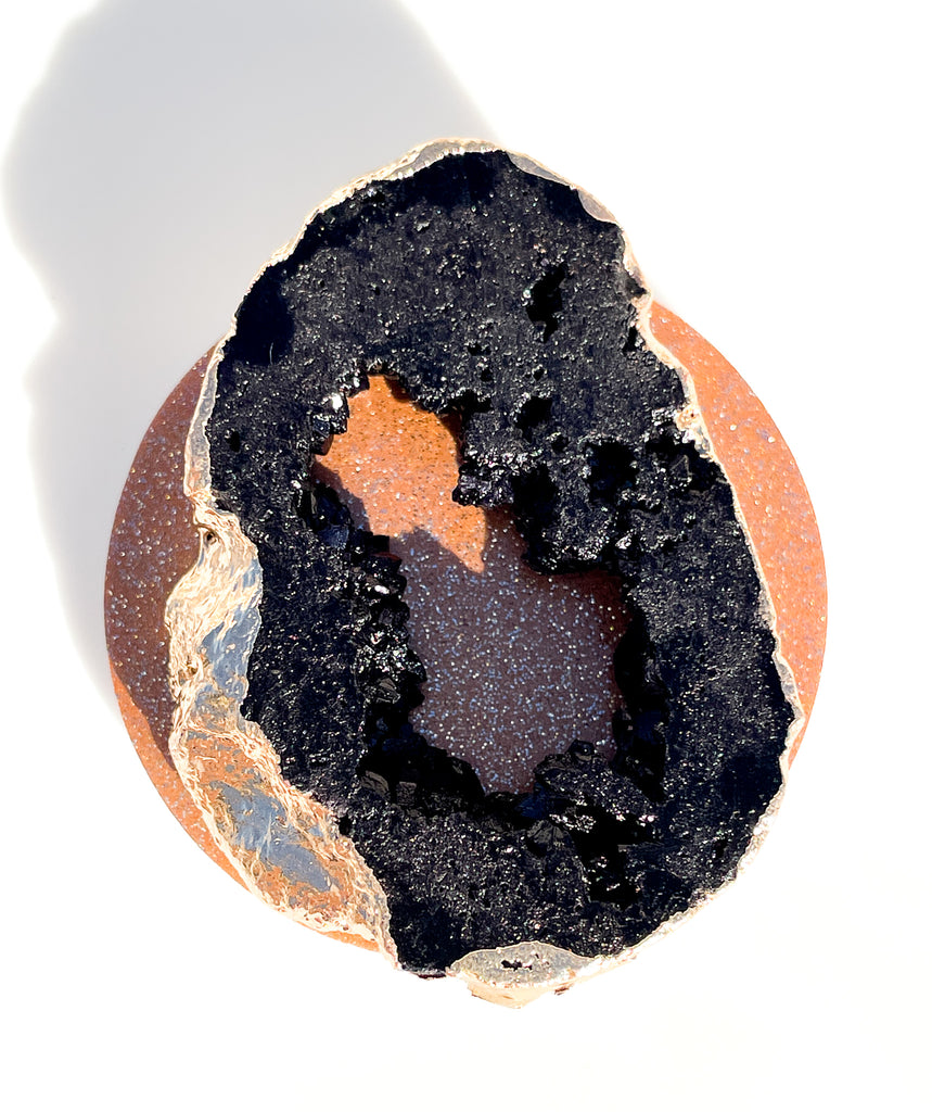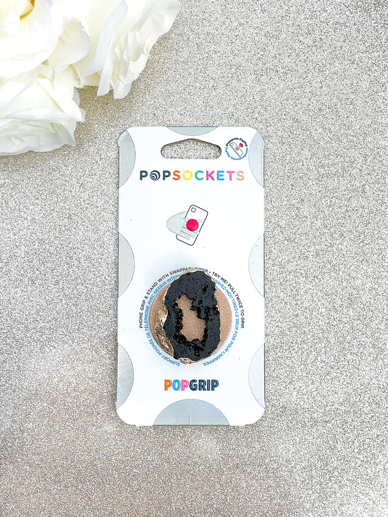 Onyx Black Druzy Geode Crystal Gold Edged Phone Popsocket