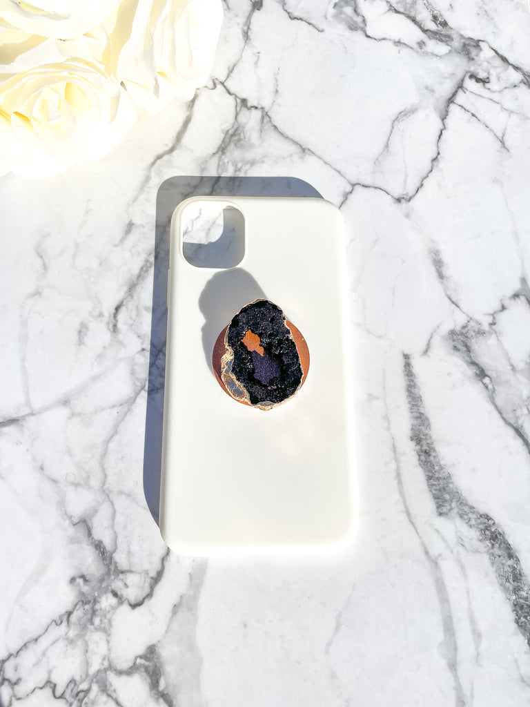 Onyx Black Druzy Geode Crystal Gold Edged Phone Popsocket 10