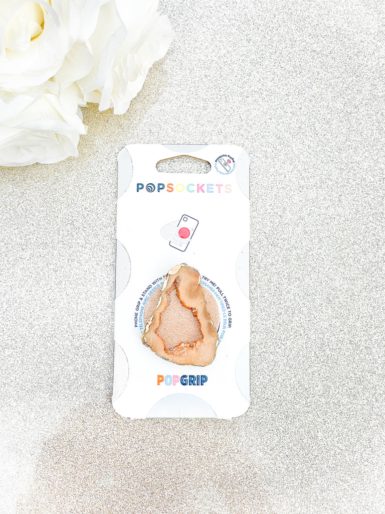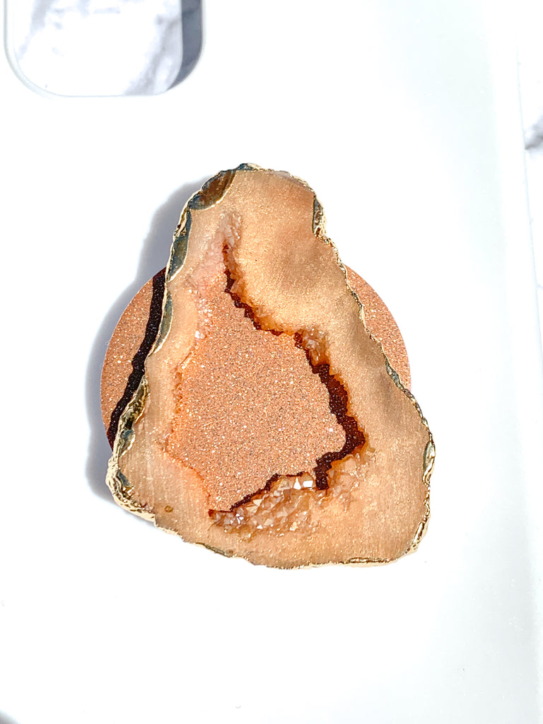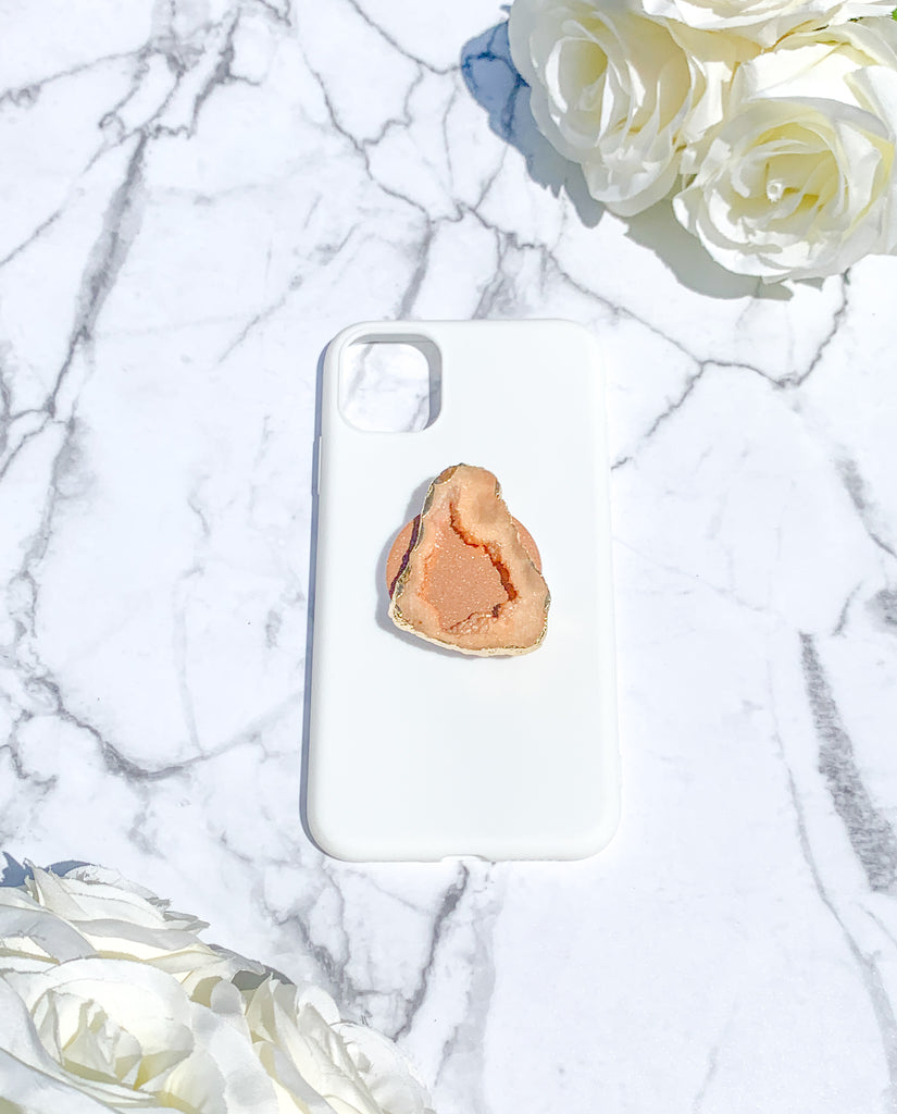 Peach / Pink Druzy Geode Crystal Gold Edged with Rainbow AB Shine Phone Popsocket