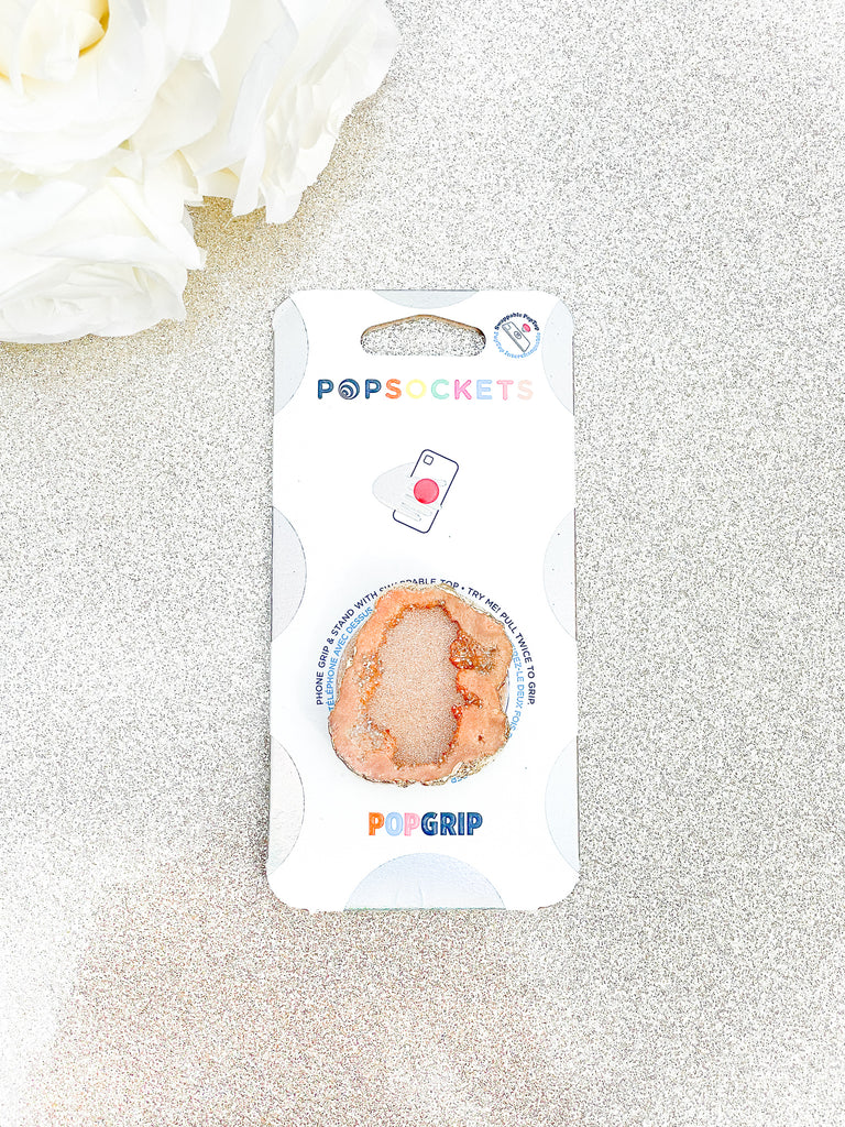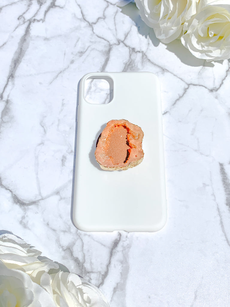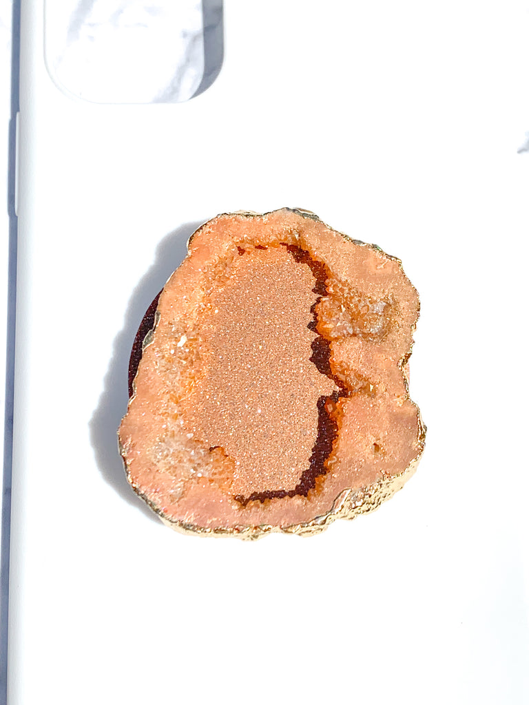 Peach / Pink Druzy Geode Crystal Gold Edged with Rainbow AB Shine Phone Popsocket