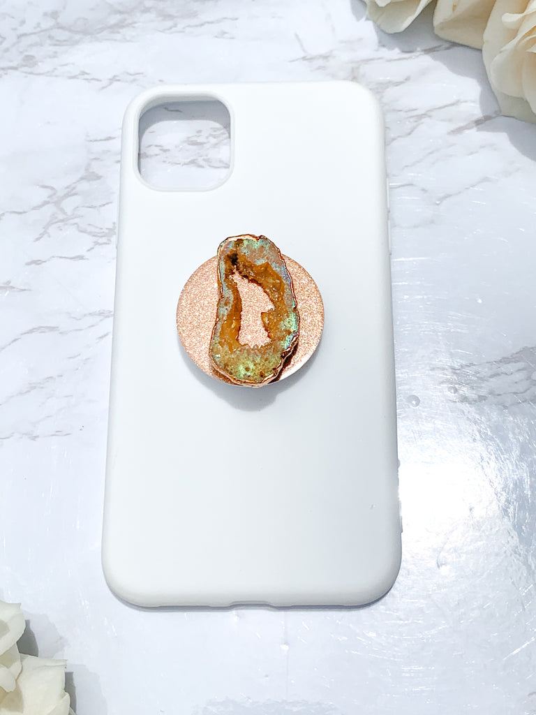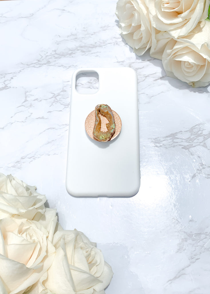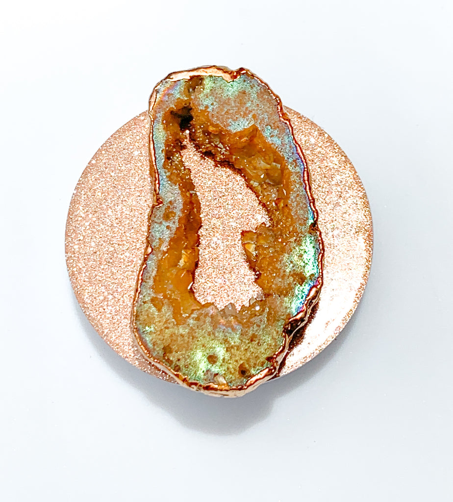 Peach / Pink Druzy Geode Crystal Gold Edged with Rainbow AB Shine Phone Popsocket
