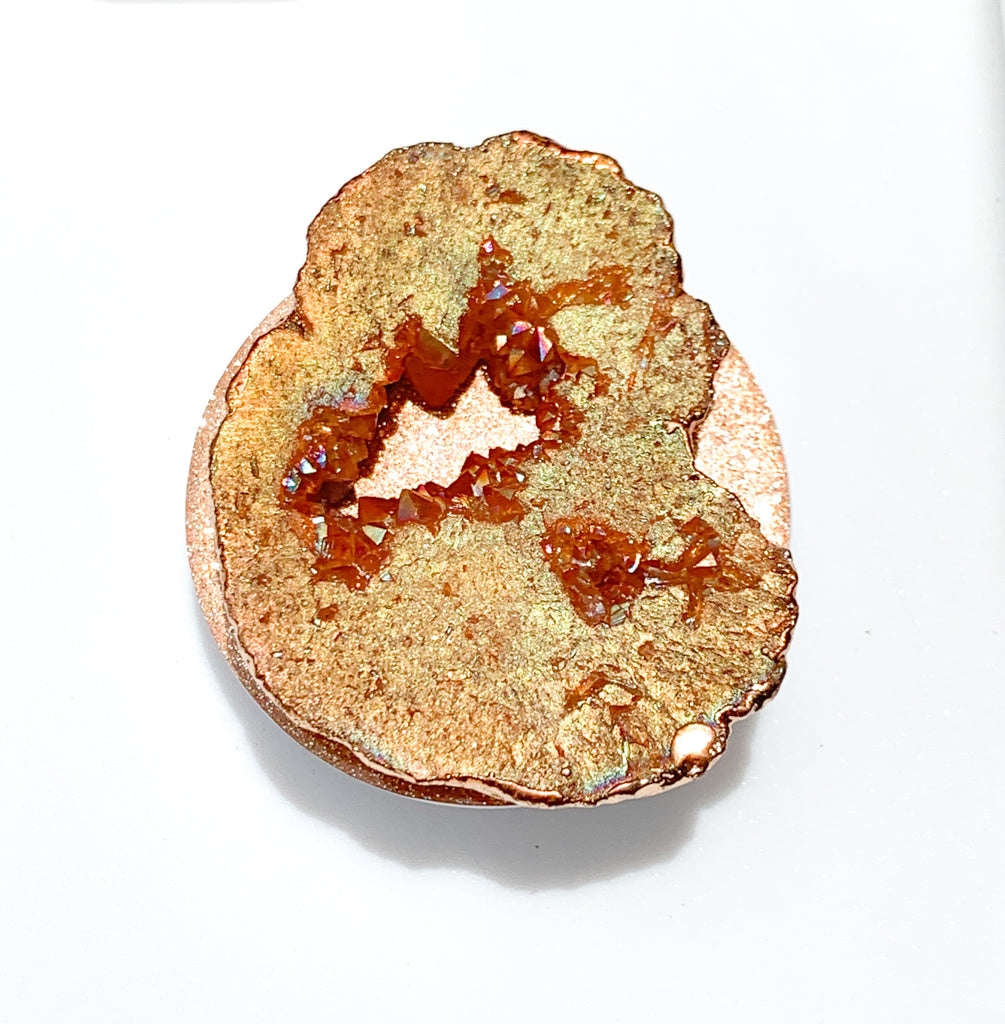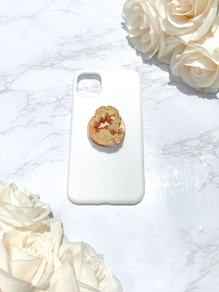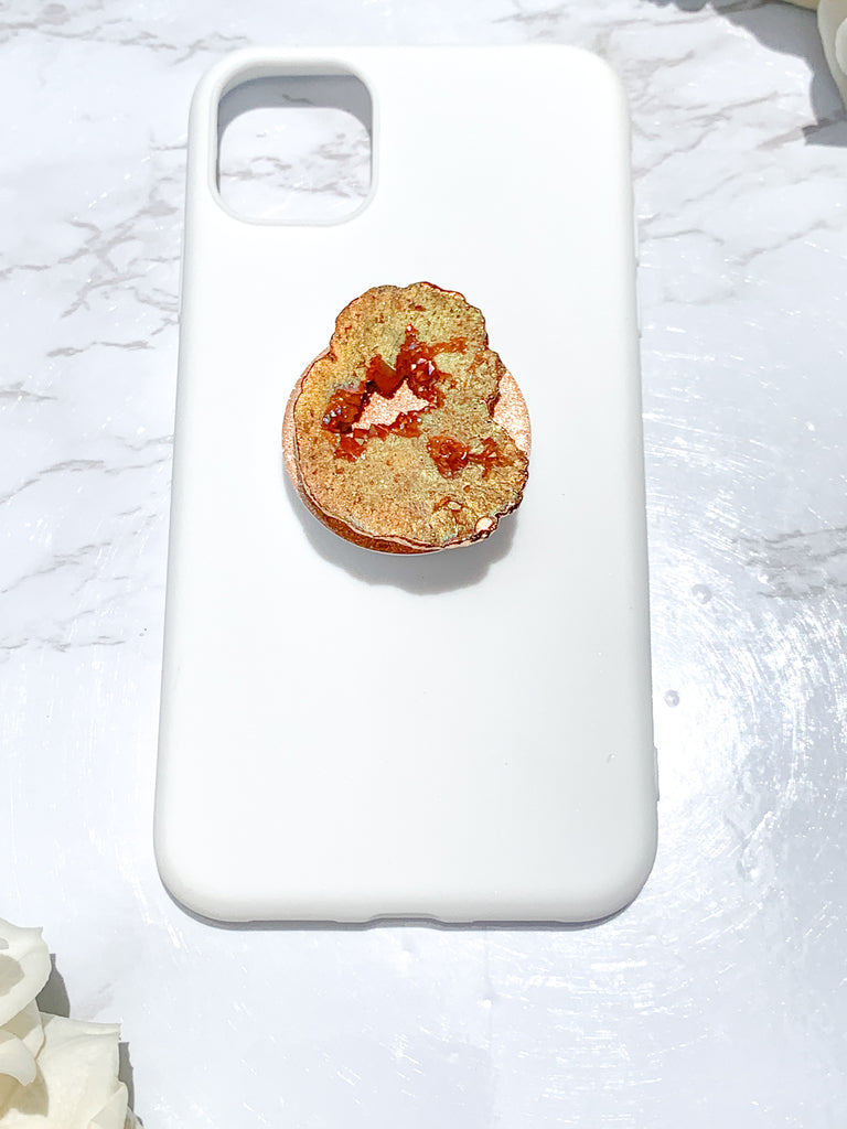 Peach / Pink Druzy Geode Crystal Gold Edged with Rainbow AB Shine Phone Popsocket