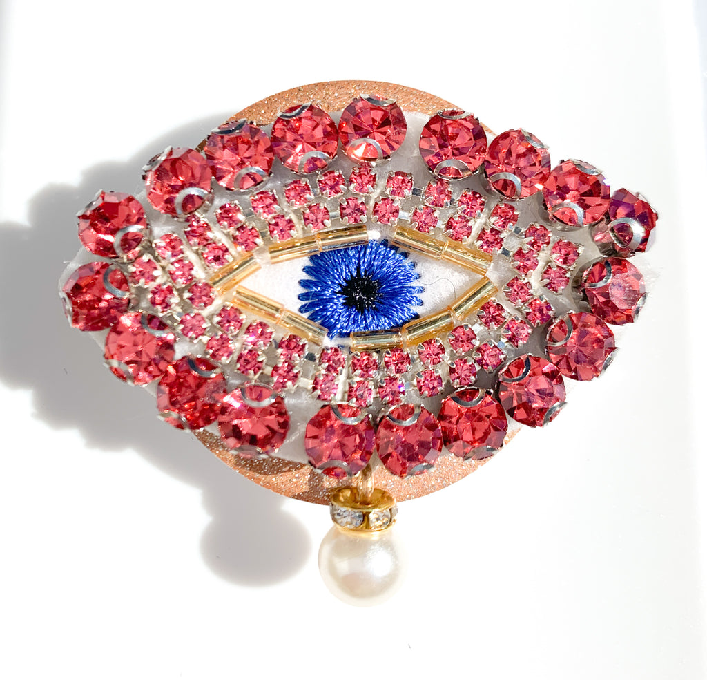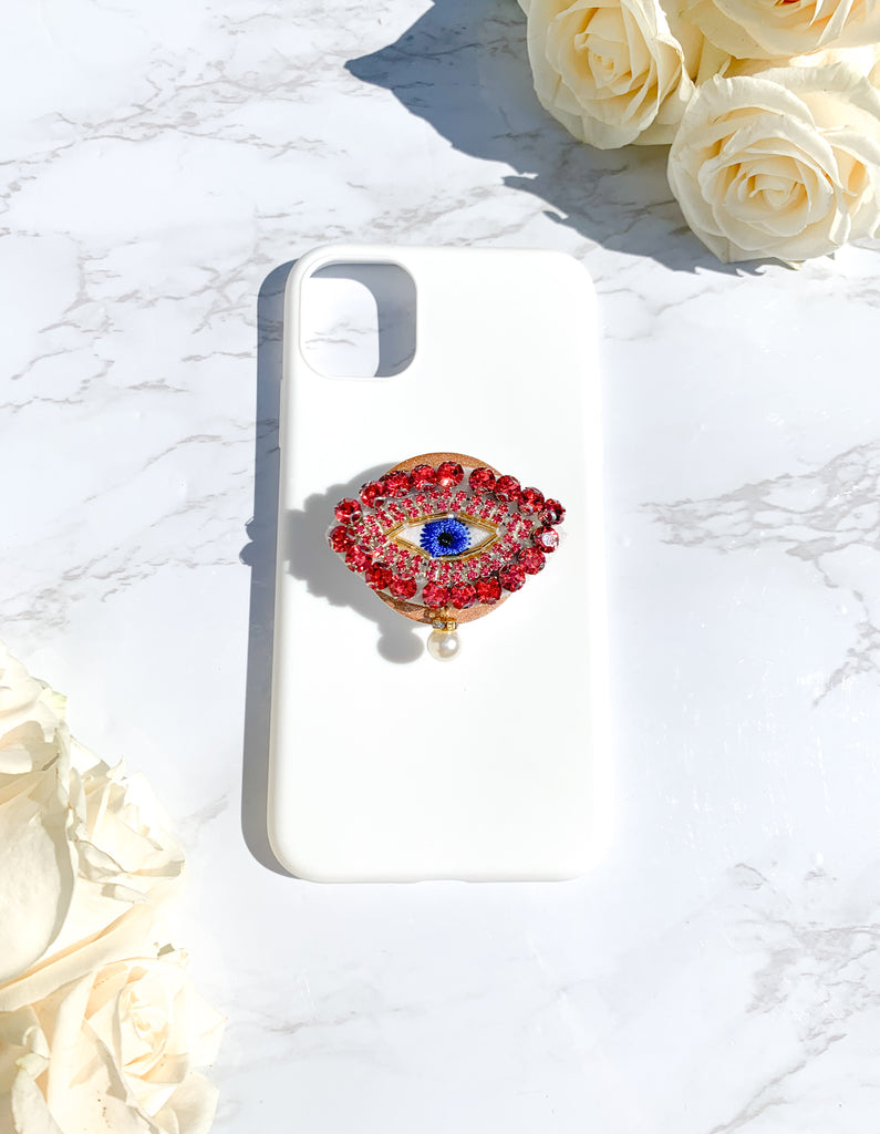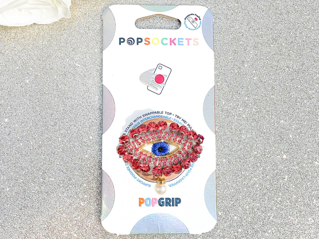 Pink Rhinestone and Pearl Evil Eye Phone Popsocket