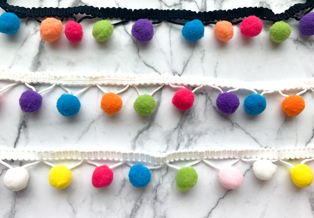 - Bright Colorful Poms on White Band