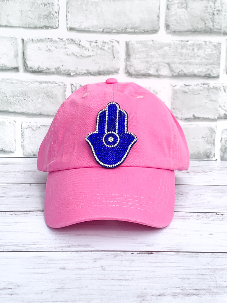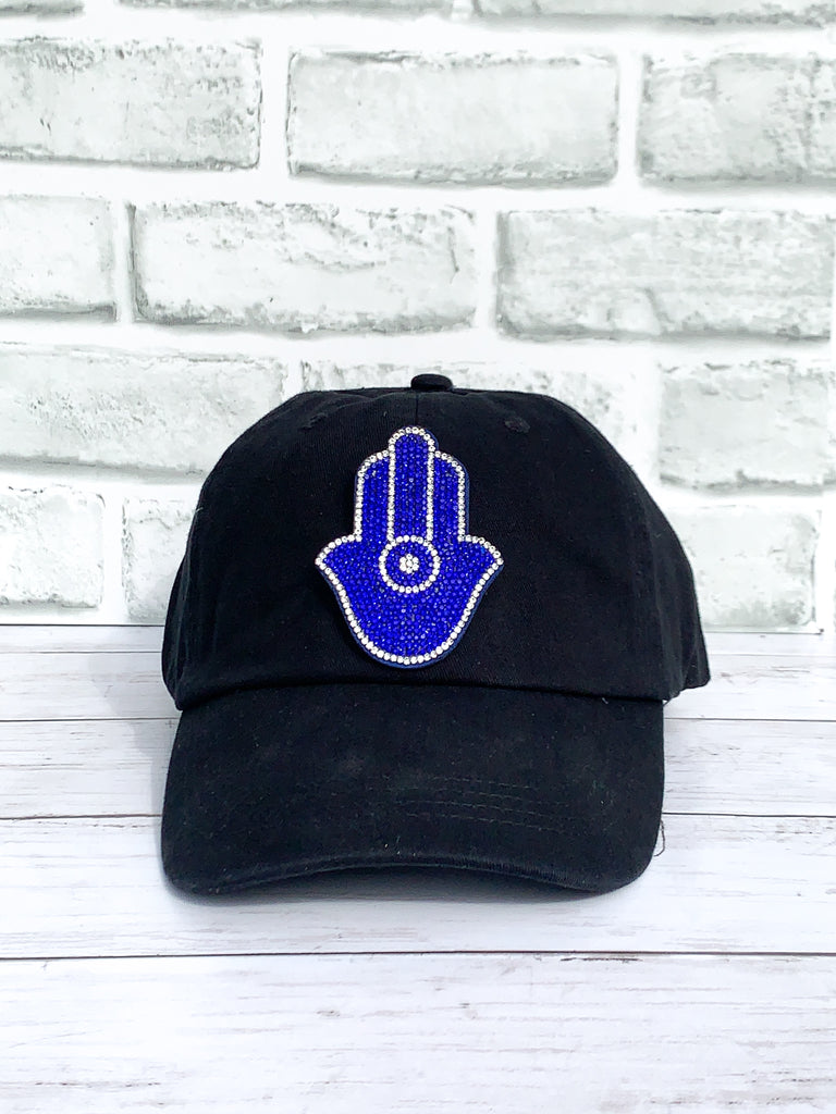 Blue Rhinestone Hamsa High Ponytail Hat - White, Black or Pink Hats!
