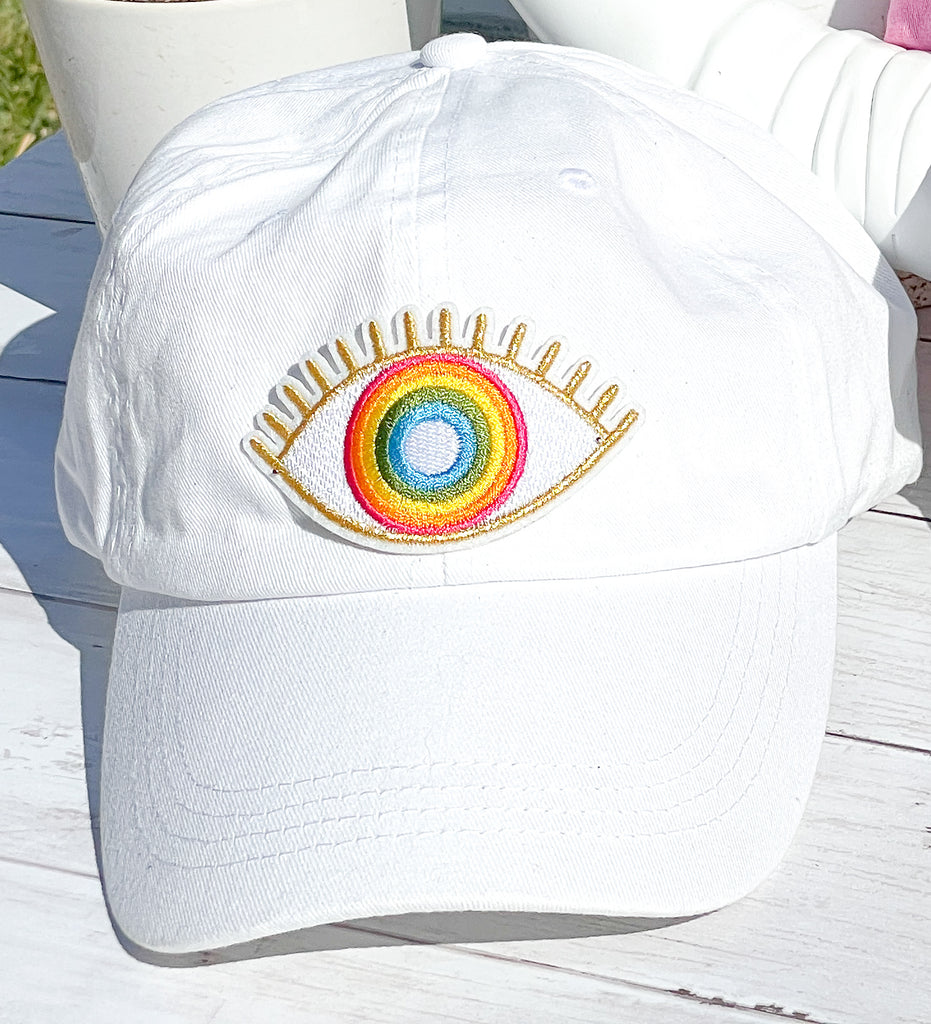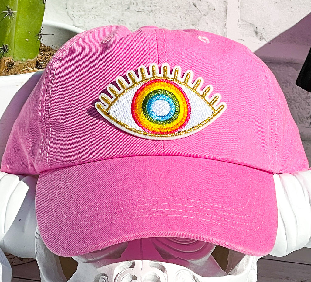 Colorful Rainbow Evil Eye High Ponytail Hat - White, Black or Pink Hats!