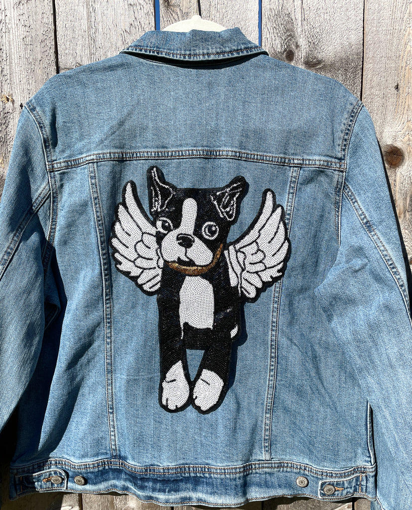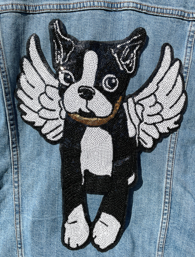 Sequin Angel Dog Jean Jacket