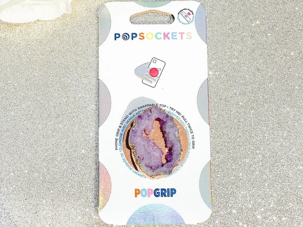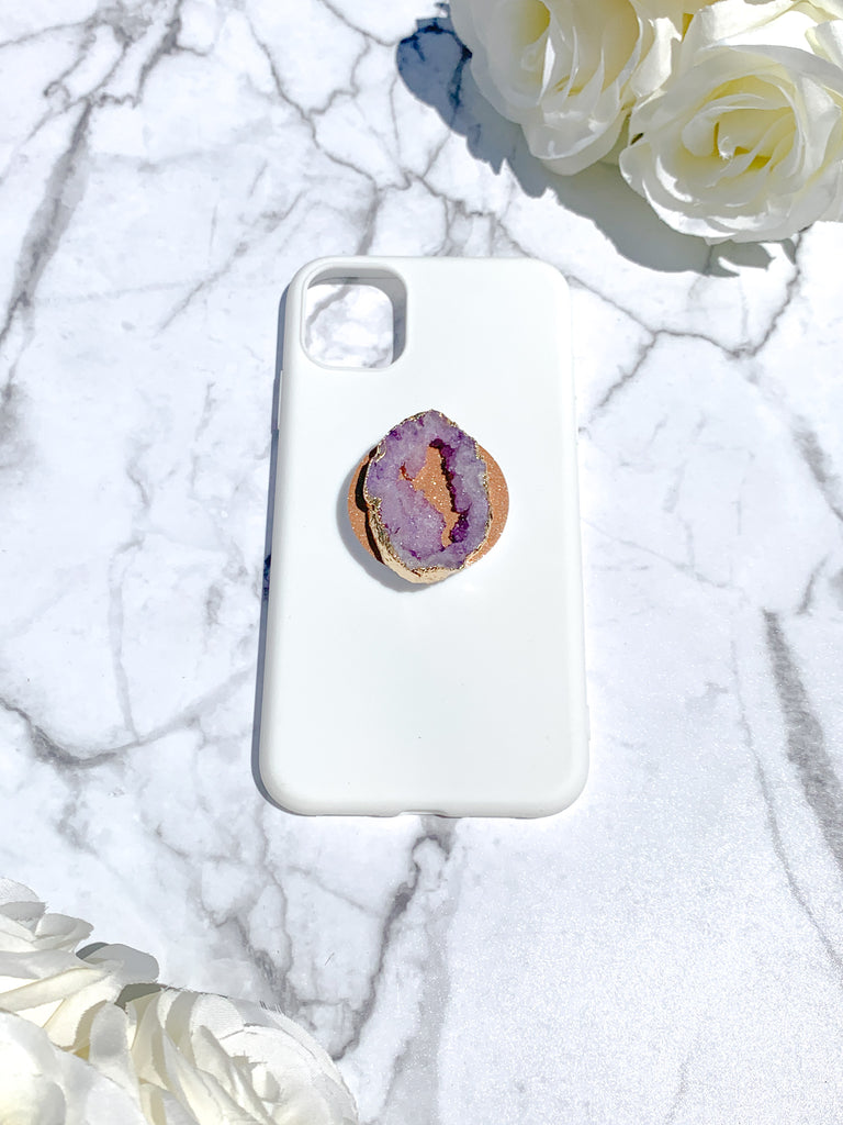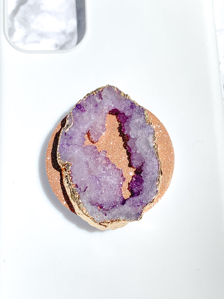 Amethyst Purple Druzy Geode Crystal Gold Edged Phone Popsocket