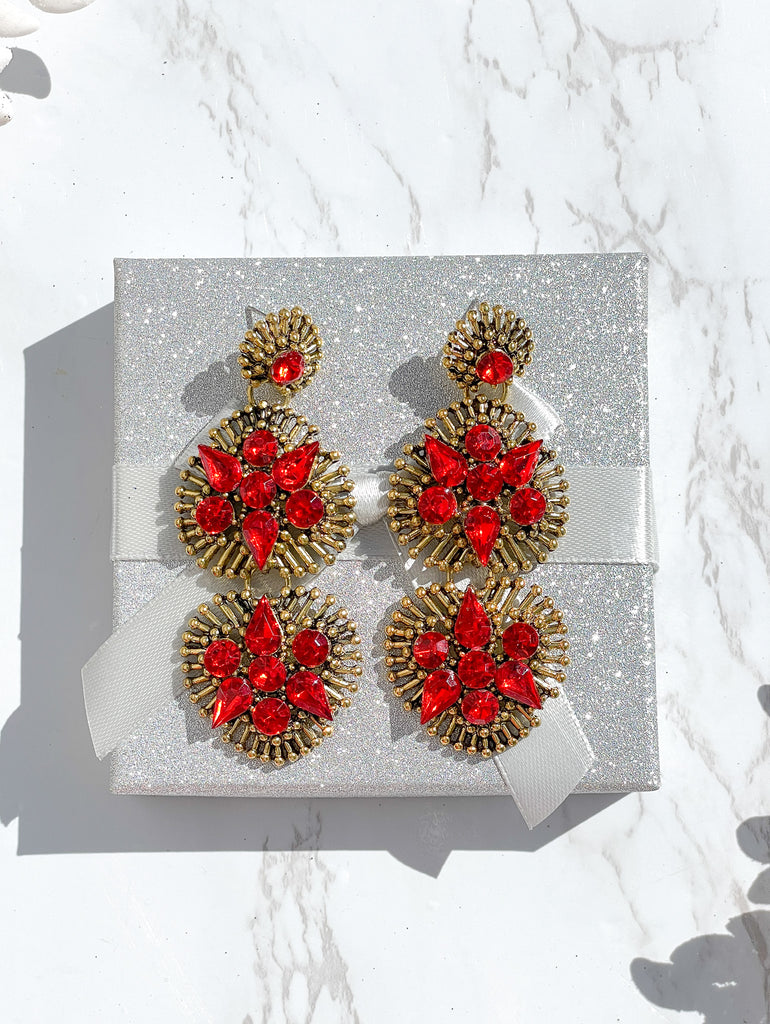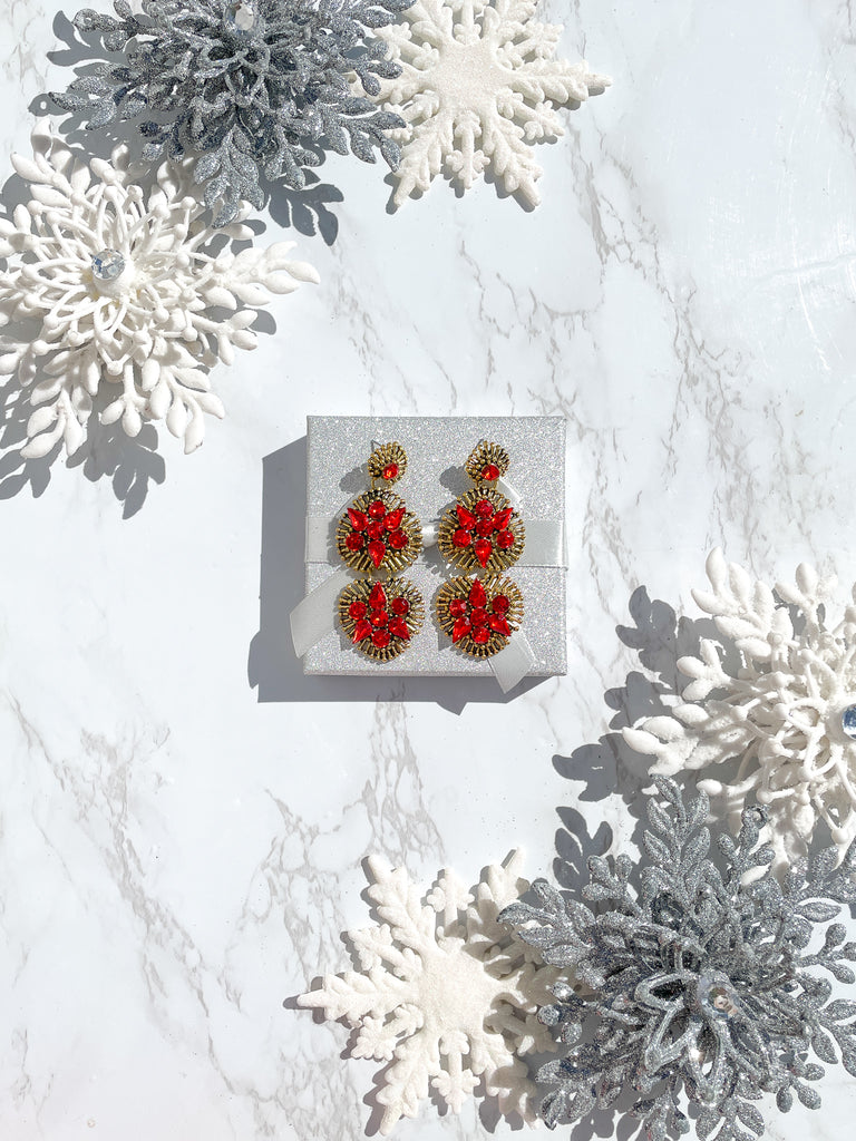 ✨🌲 Gold and Red Rhinestone Christmas Earrings - Holiday Earrings / Festive Earrings / Gold Earrings / Red Rhinestone Earrings / Xmas Earrings 🌲✨