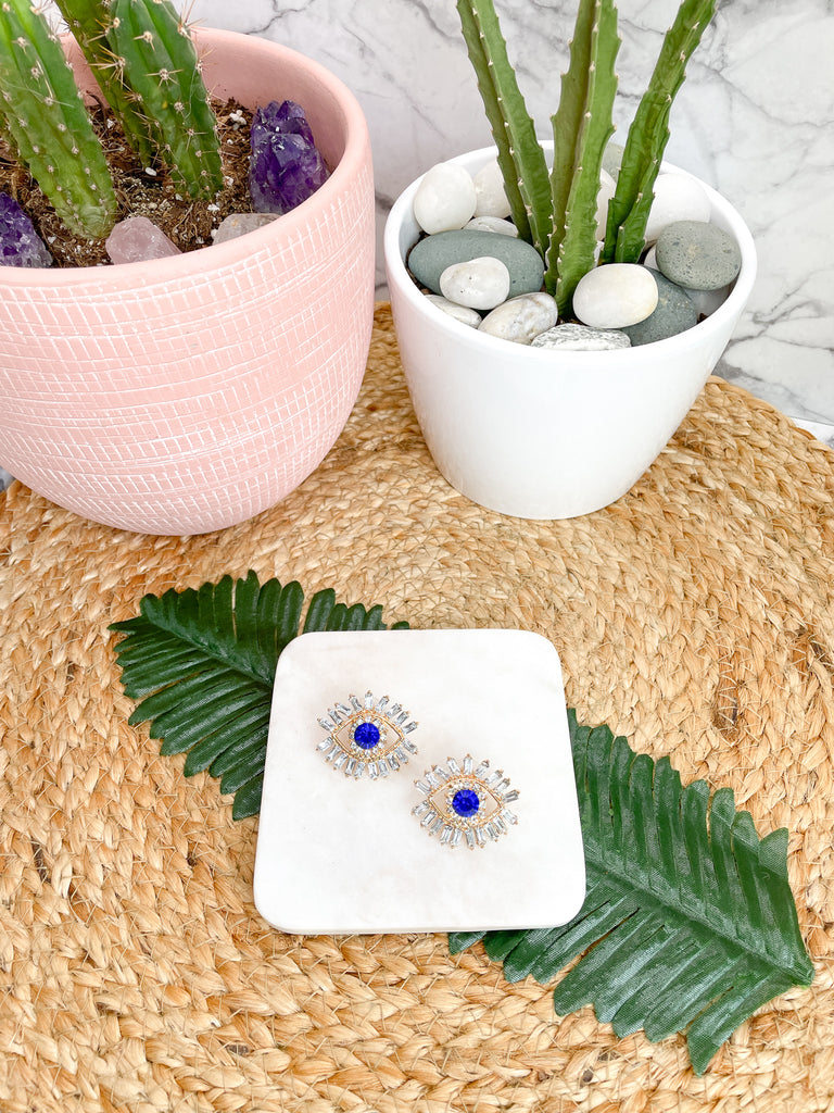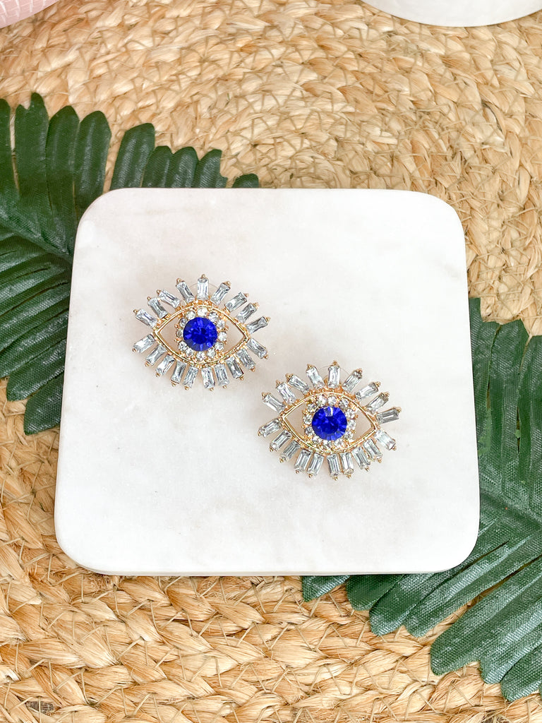 🧿 Gold and Rhinestones Blue Evil Eye Earrings