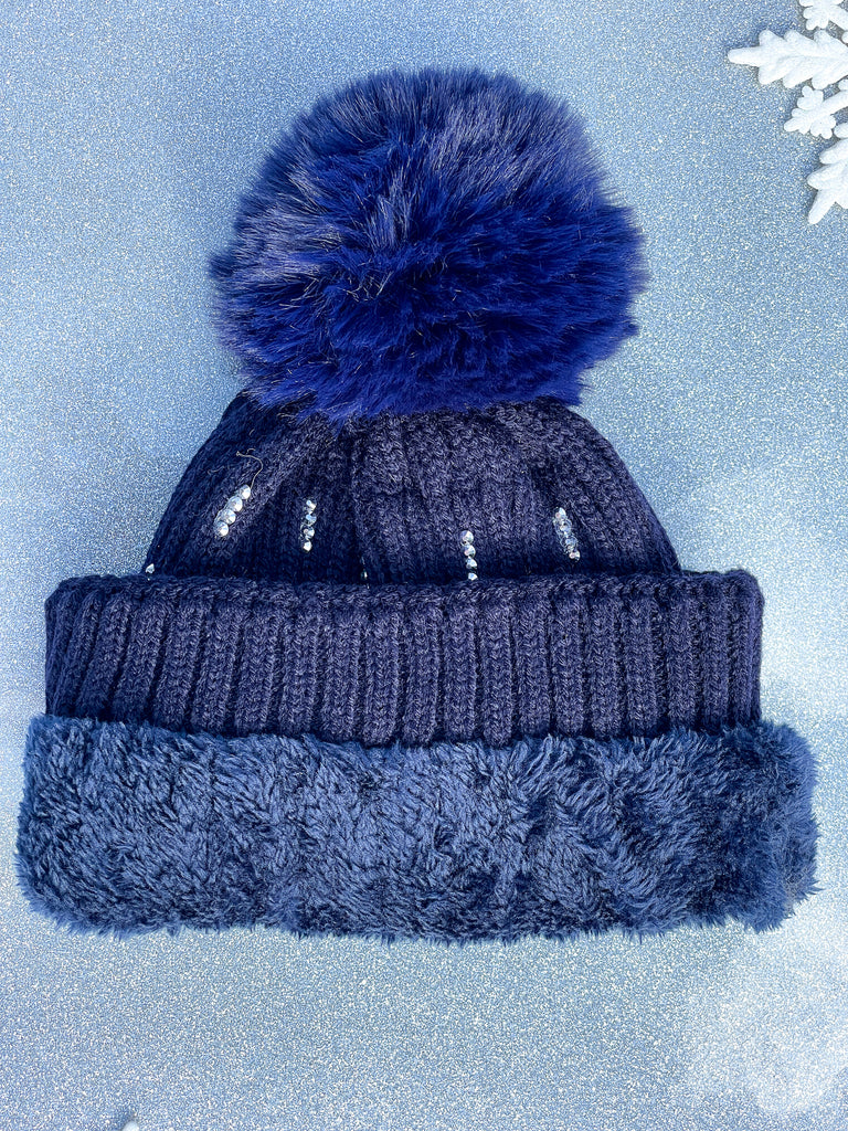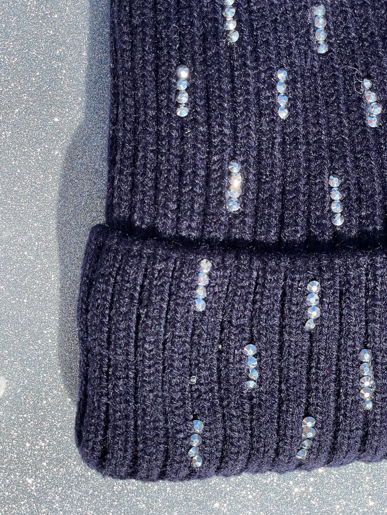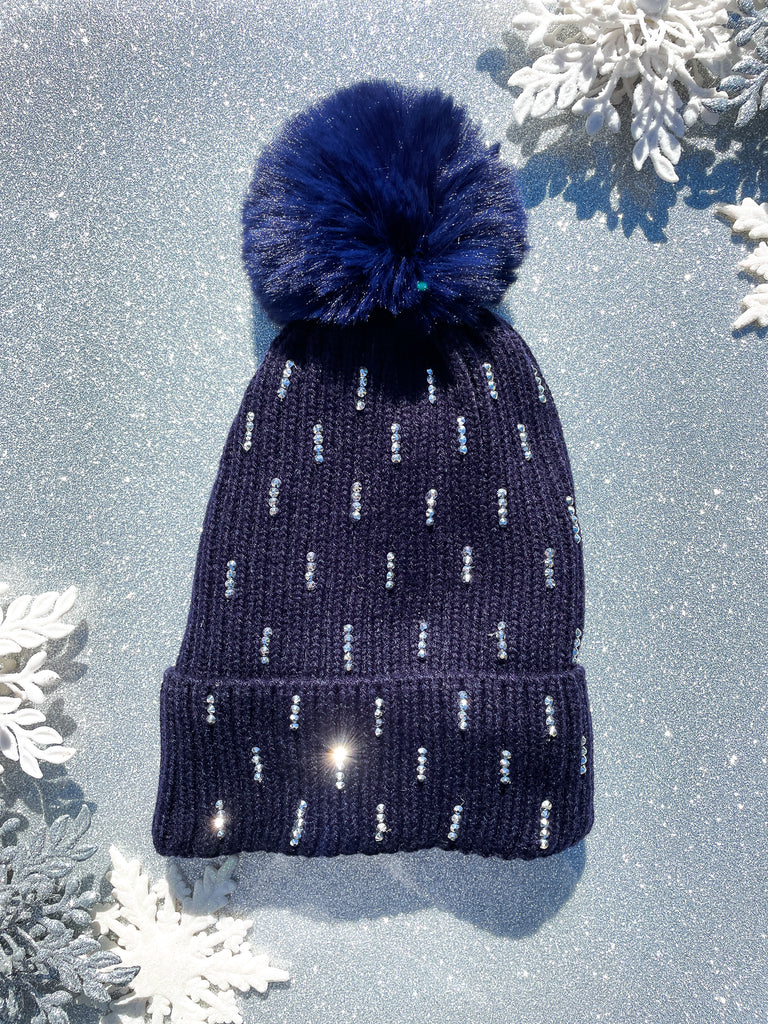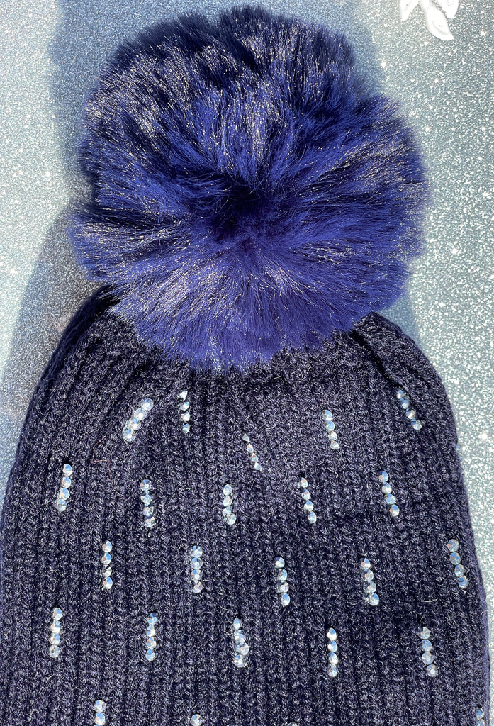 ❄️ Navy Blue Rhinestone Beanie -Ski Beanie / Fur Beanie / Knit Beanie / Rhinestone Beanie / Navy Beanie / Bling Beanie / Winter Hat / Glam Hat ❄️